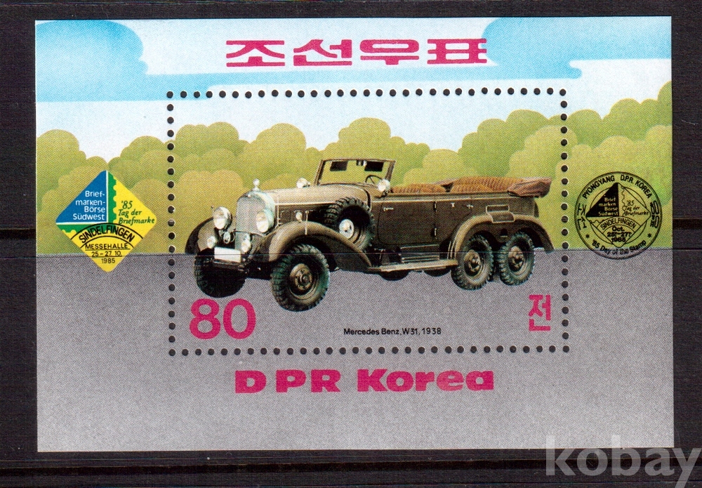 (자동차) 북한 1985.10.25 도이췰란드우표취인시장 <<쥐드웨스트 85>> s/s MNH