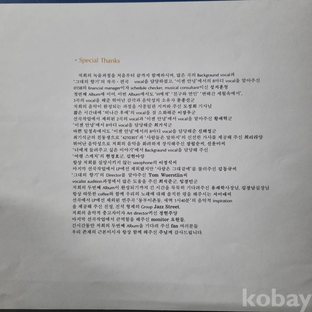 공일오비 2집, 1991년 초반, 가사지 있습니다.