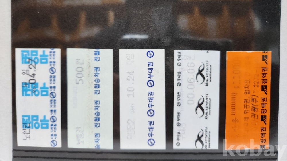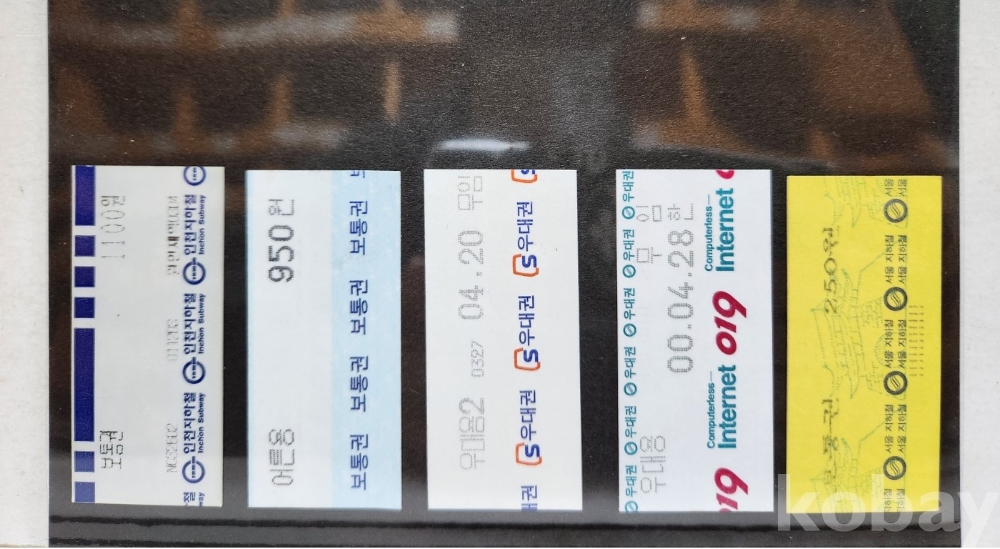 -기차, 지하철, 버스표등 다양합니다.