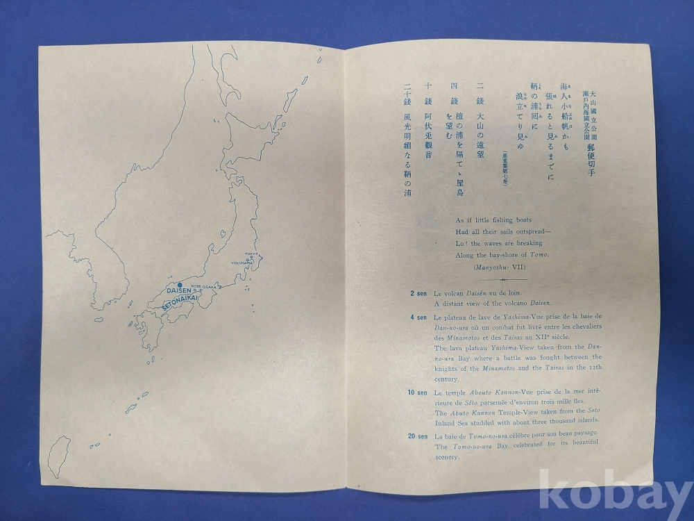 [일본] 1939.4.20. 다이센.세토나이카이 국립공원우표 안내장 3부(기념인)