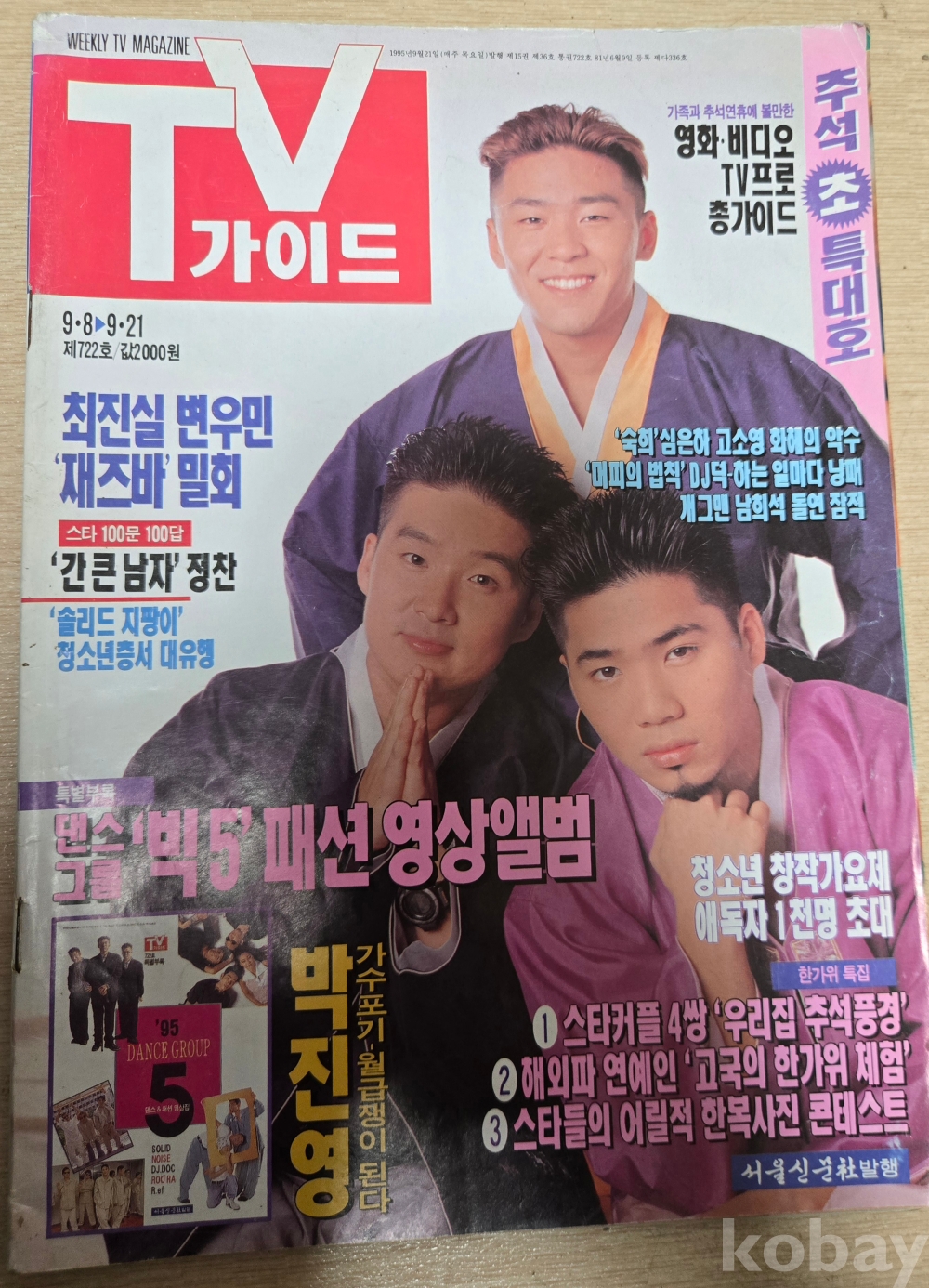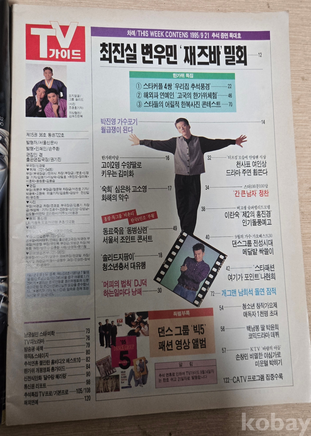 tv가이드 95년9월21일 추석특대호 박진영 나현희 tv편성표 잡지 신문 만화 부록 상태 좋음