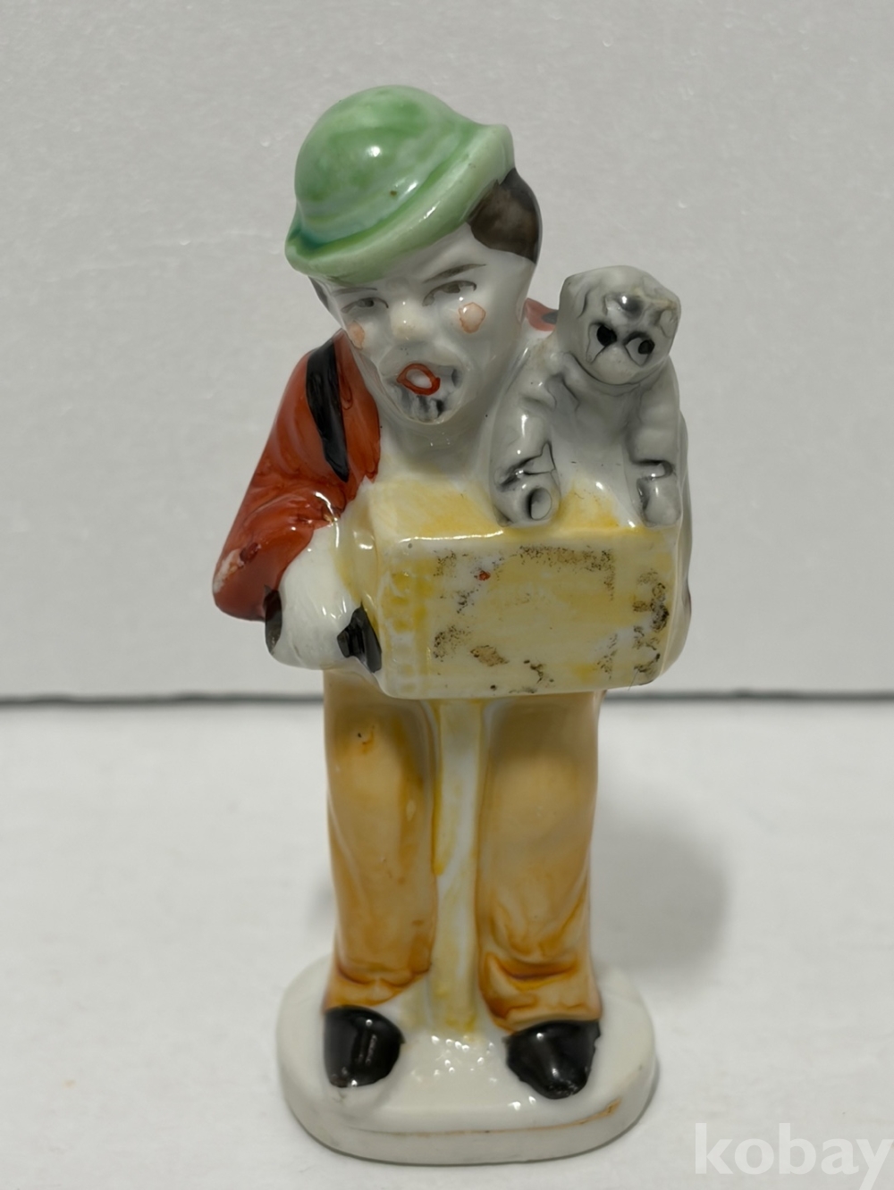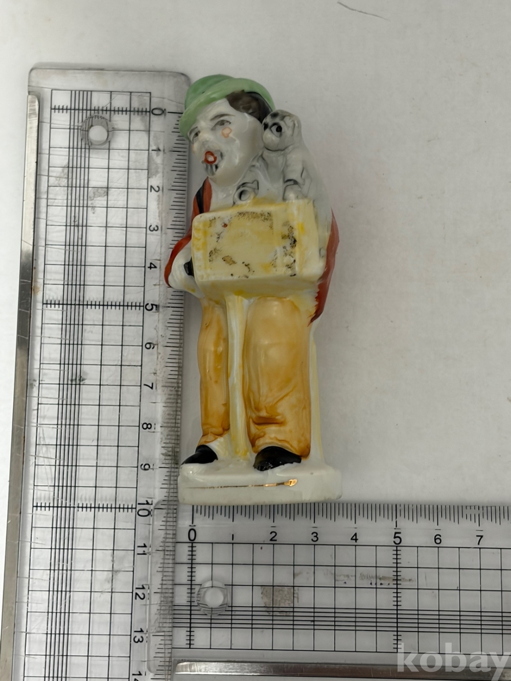 오르간 연주자와 원숭이가 있는 도자기 인형입니다.