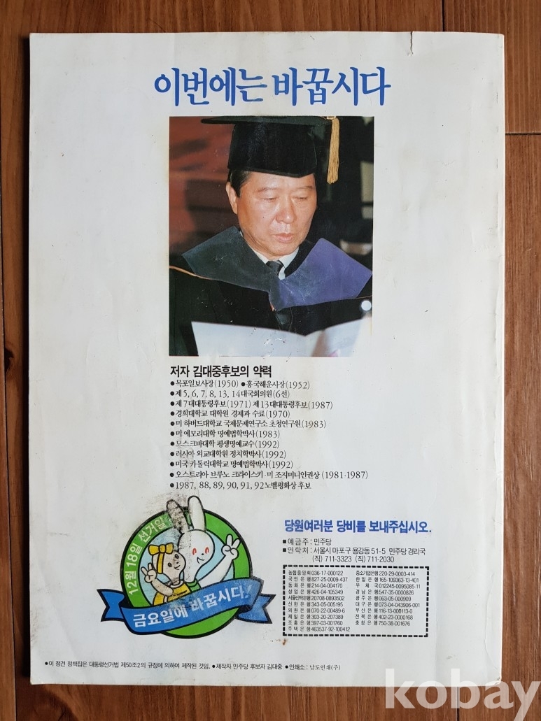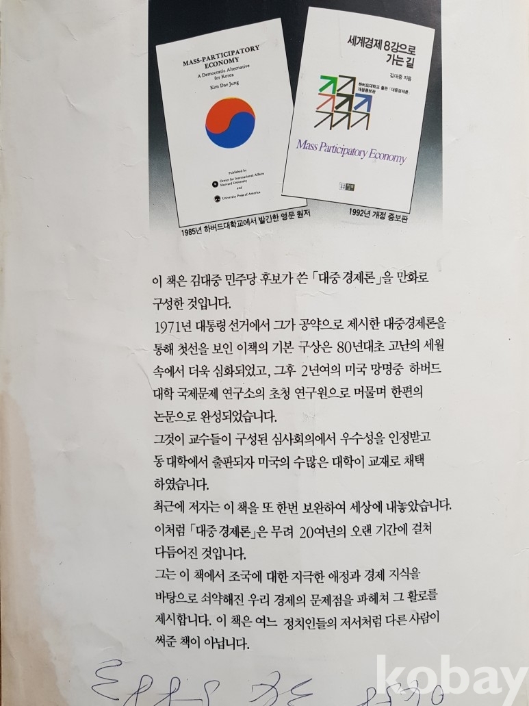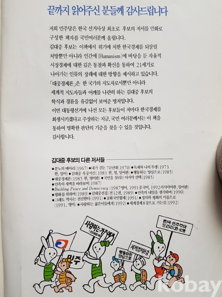 설명: 이 만화책은 김대중 민주당 총재의 글에 허영만 만화가가 그림을 그려 만든 민주당 대통령 후보 김대중 총재의 재미있는 한국경제이야기 만화책입니다.