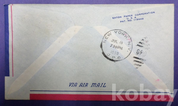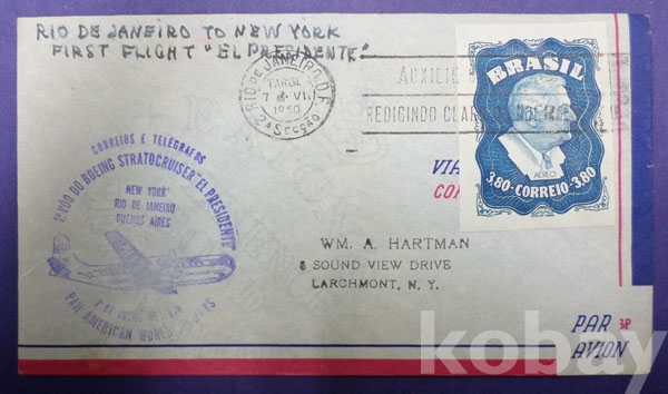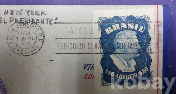 [테마틱] 항공*우편/1950년 브라질 리어데자네으로 → 미국 뉴욕 FFC