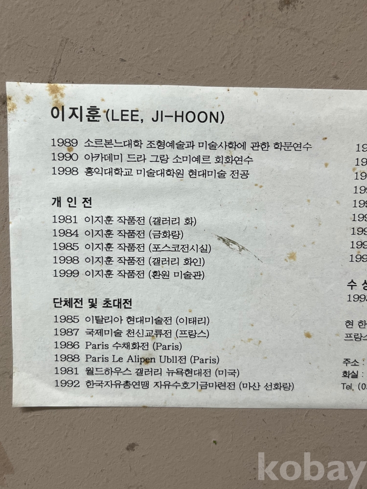 1989 소르본 대학 조형예술과 미술사학에관한 학문 연수