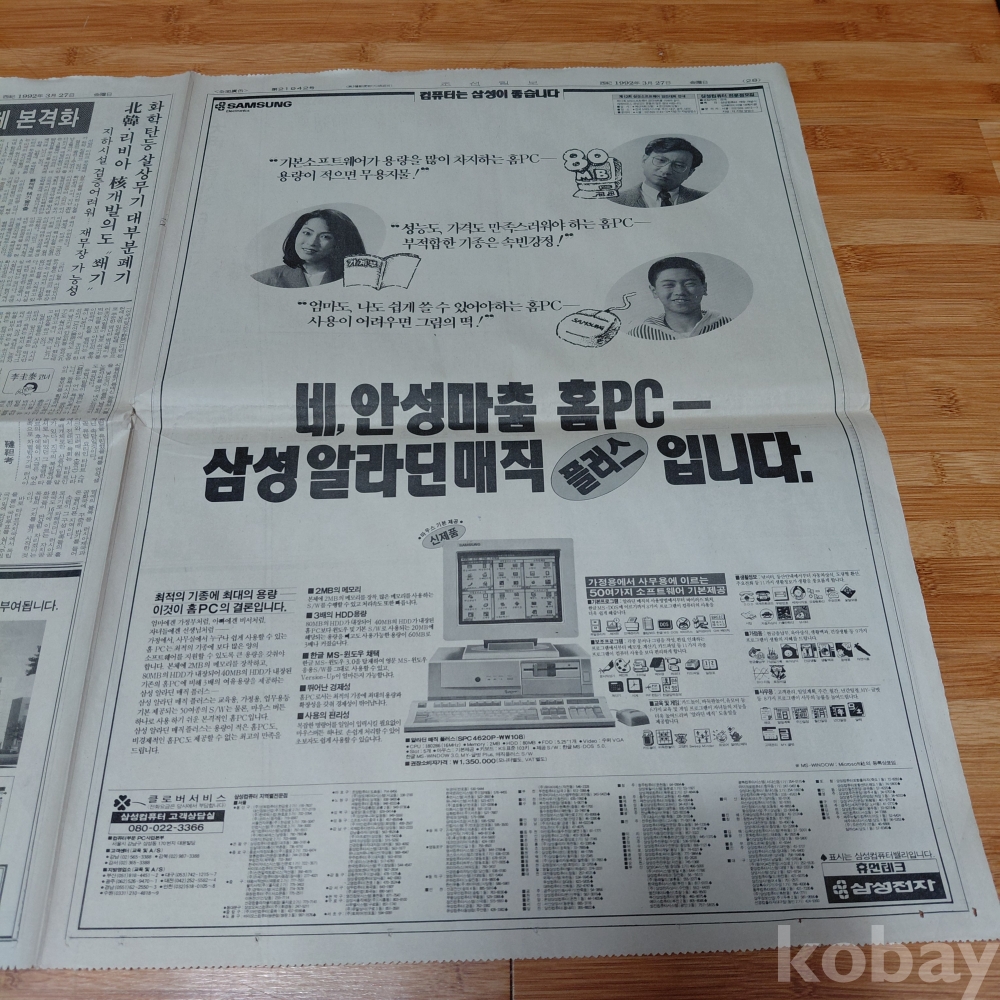 삼성전자 삼성 알라딘 매직 플러스 컴퓨터 광고 조선일보 92년3월27일 올려드립니다