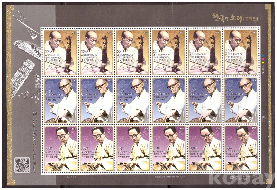 (한국전지) 2018.4.30 한국의 소리(국악인) sheet of 18 MNH