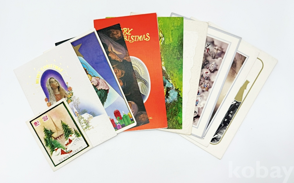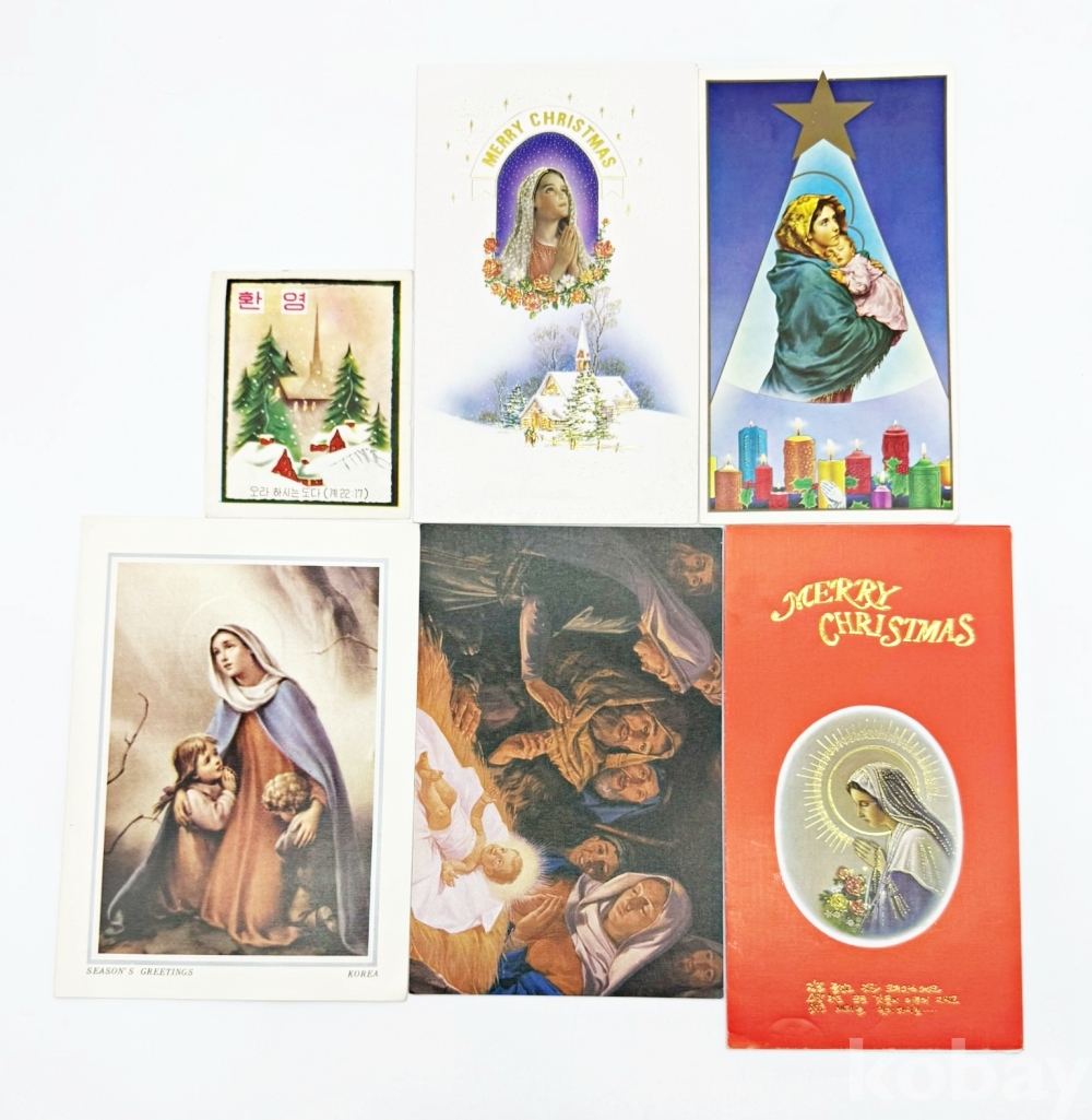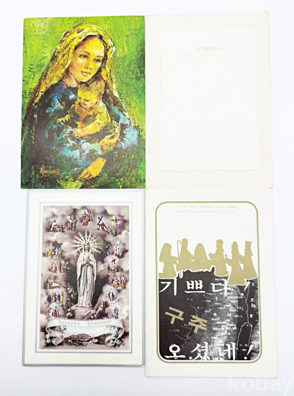 상품설명 | 앞면에 성모 마리아와 아기 예수의 모습 등이 담긴 성탄절 및 새해 기념 카드이다. 총 10점 일괄. | ||