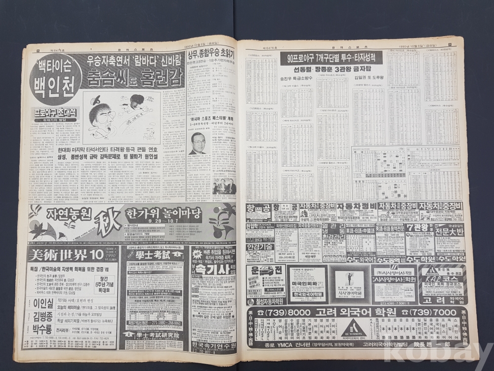 **** 1990.10.05(일간스포츠) - 코오롱상사(주) 영원한 자유인-스파소 등 광고포함-약 20면