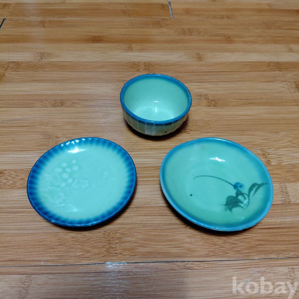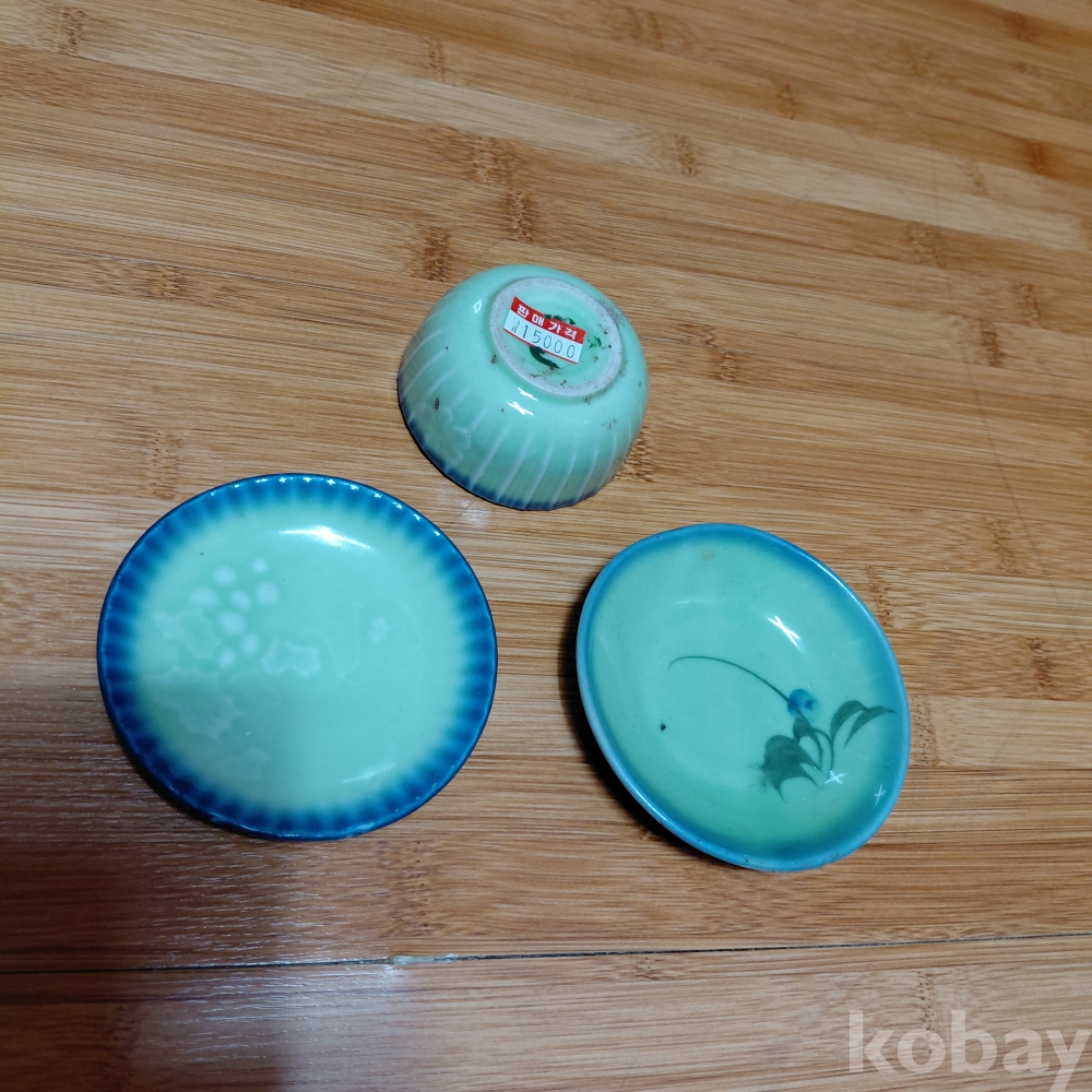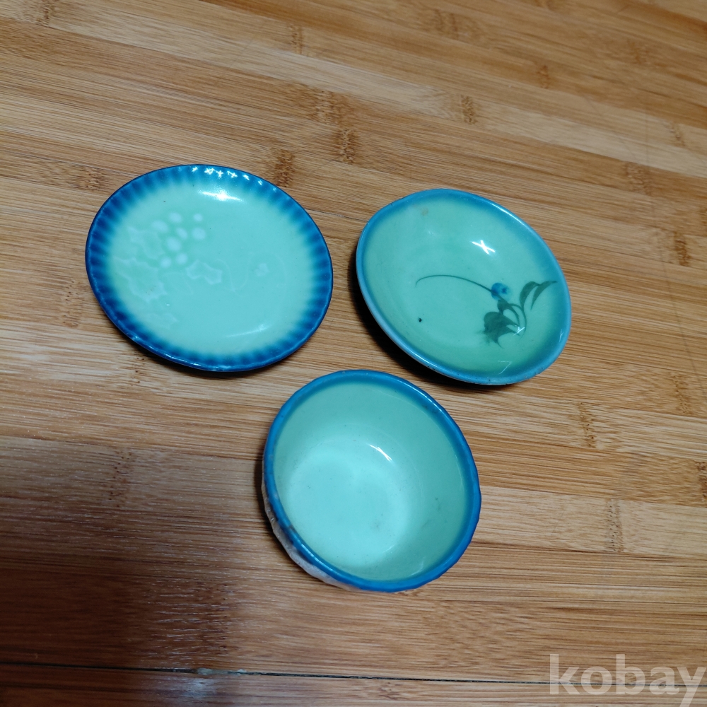 일제강점기 시대 제작사용 야생화 꽃그림 청자 접시등세점일괄 올려드립니다