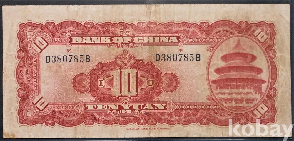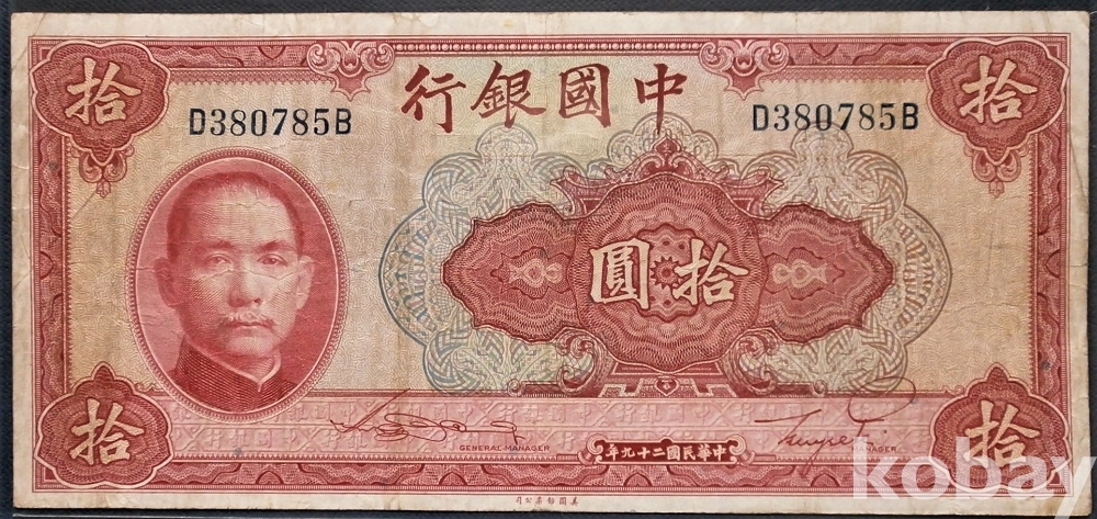 중국 중국은행 10원 민국29년