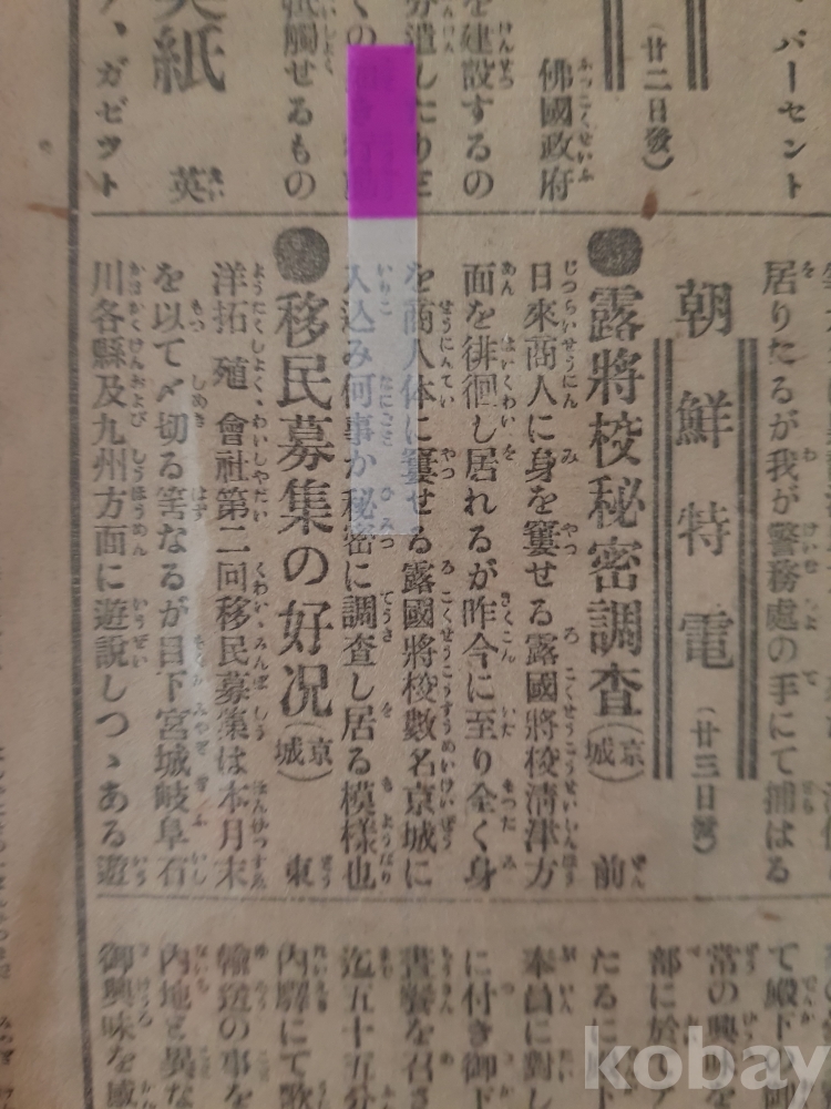 [FF10]*東京日日新聞/1911.8.24./朝鮮特電.러시아장교비밀조사,7월의 경제상황(경성)/