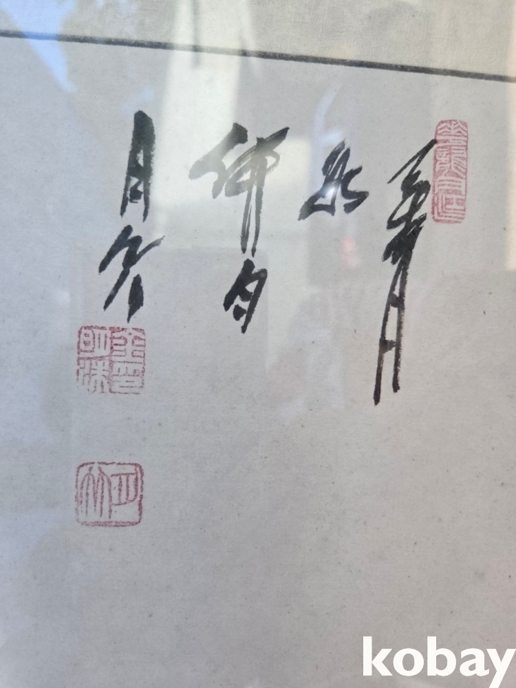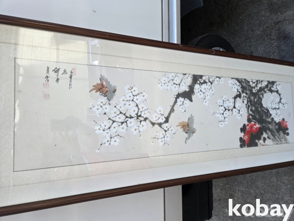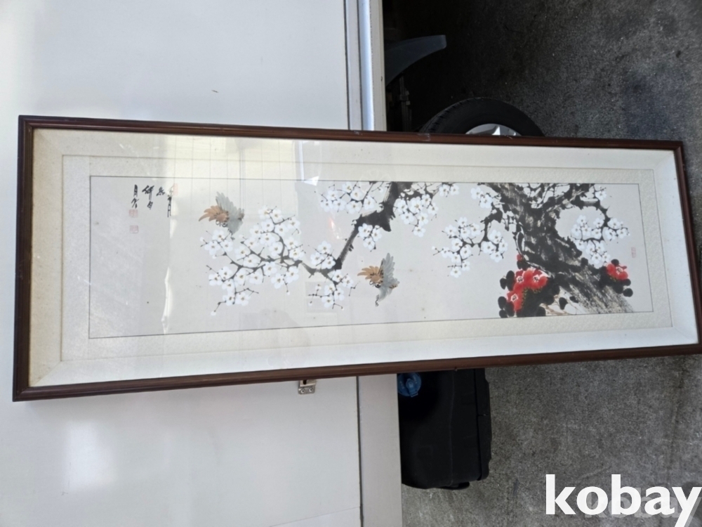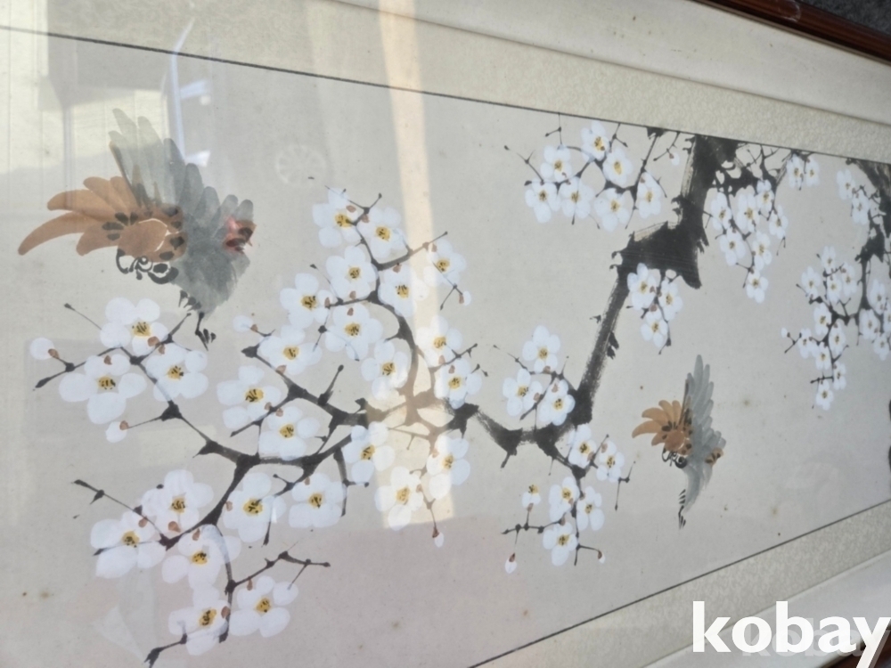 매화 꽃에 새 그림 액자 입니다.
