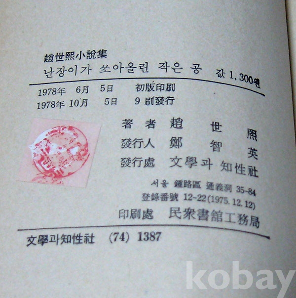 78년 발행 / 난장이가 쏘아올린 작은 공 입니다.