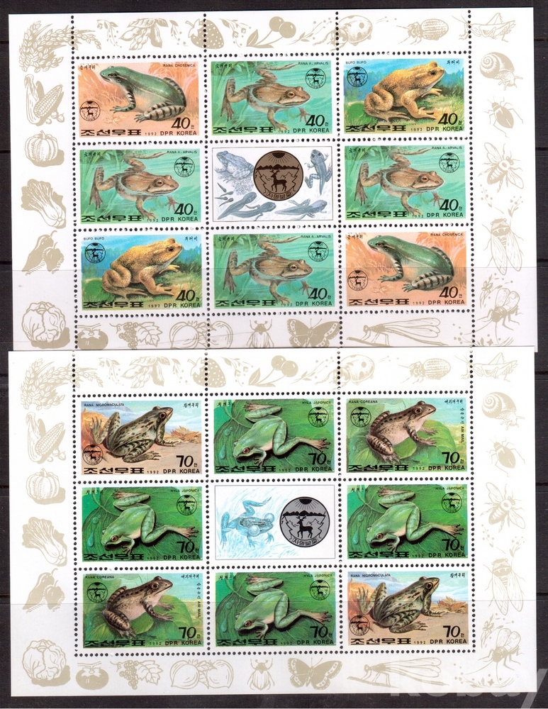 (양서류) 북한 1992.9.10 개구리 2 sheetlet of 8+label MNH