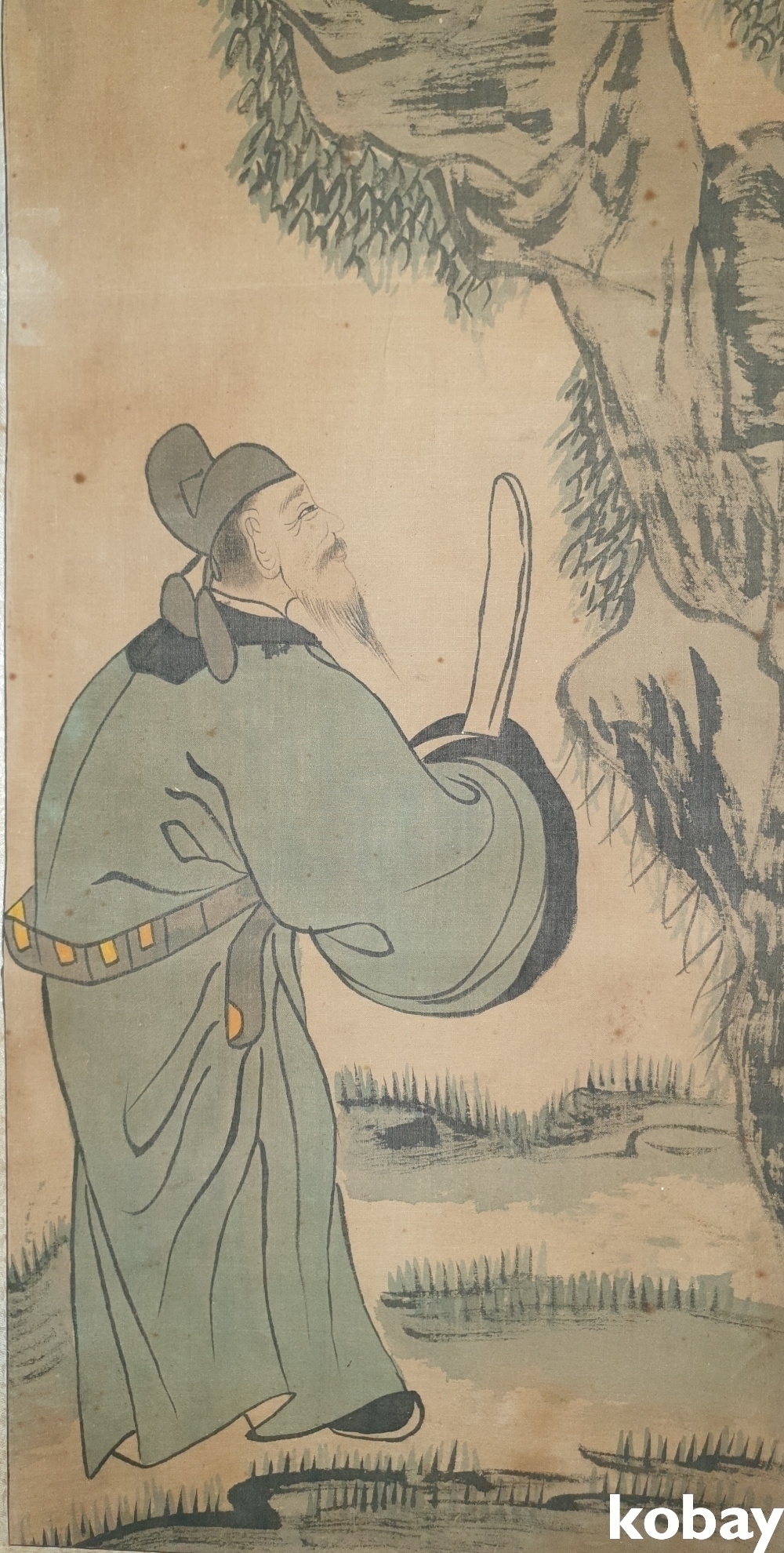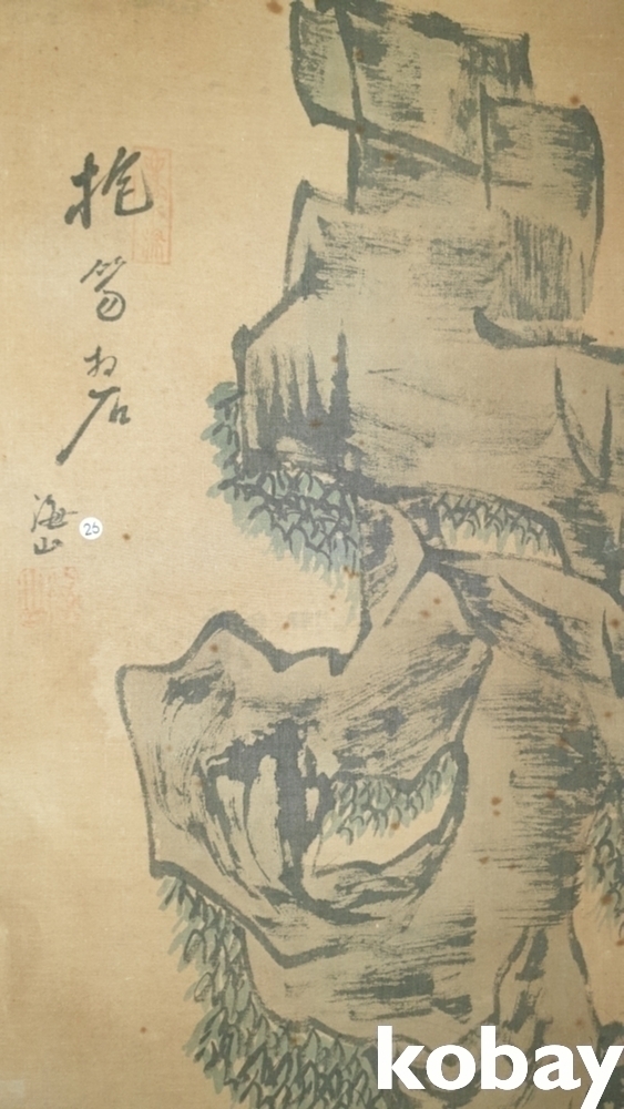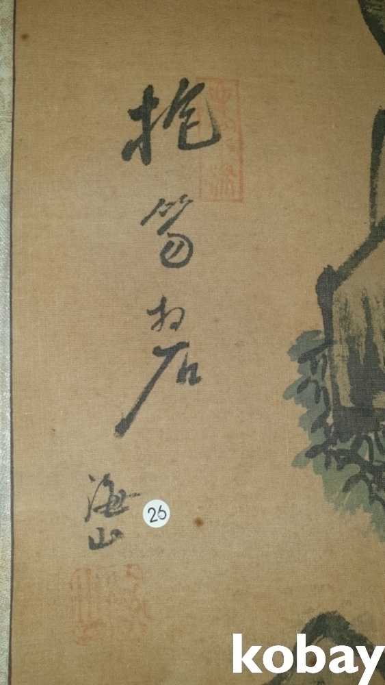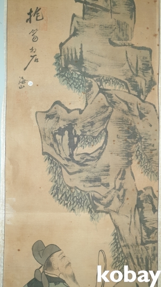 유명화가 해산 (海山) 수결과 낙관이 보이는 비단에 채색된 인물화입니다,