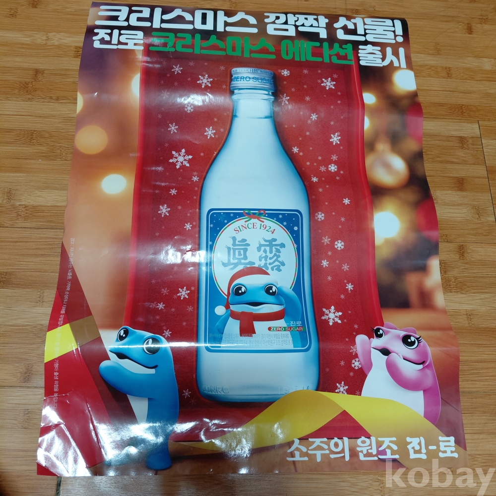소주의원조 진로 소주 크리스마스 깜짝 선물 홍보포스터 한장 뒷장 테이프 자욱있음 앞면갈라진곳있음 예민한 분들입찰 정중하게 사양 부탁드립니다