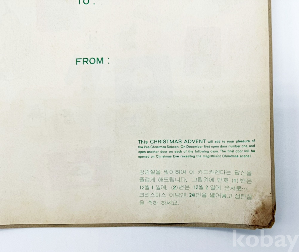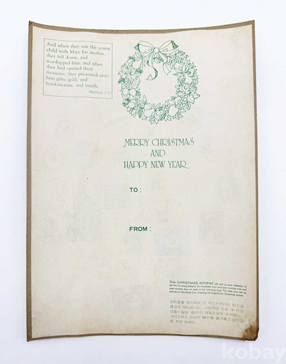 상품설명 | 12월 1일부터 24일까지, 날짜에 맞는 칸을 하루에 하나씩 열어 숨겨진 그림을 발견하는 형태의 '어드벤트 캘린더' 이다. | ||
