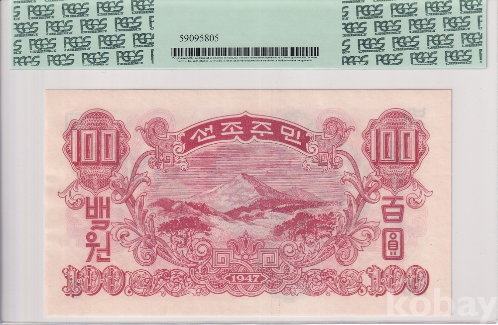 - 윗동네 1947년 100원 오리지널 지그재그 투문 PCGS 66 PPQ 인증 지폐