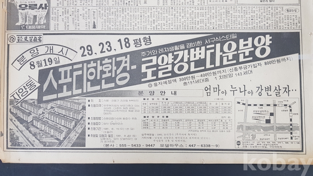 **** 1981.08.18(동아일보)/로얄강편타운분양 광고포함/약 12면