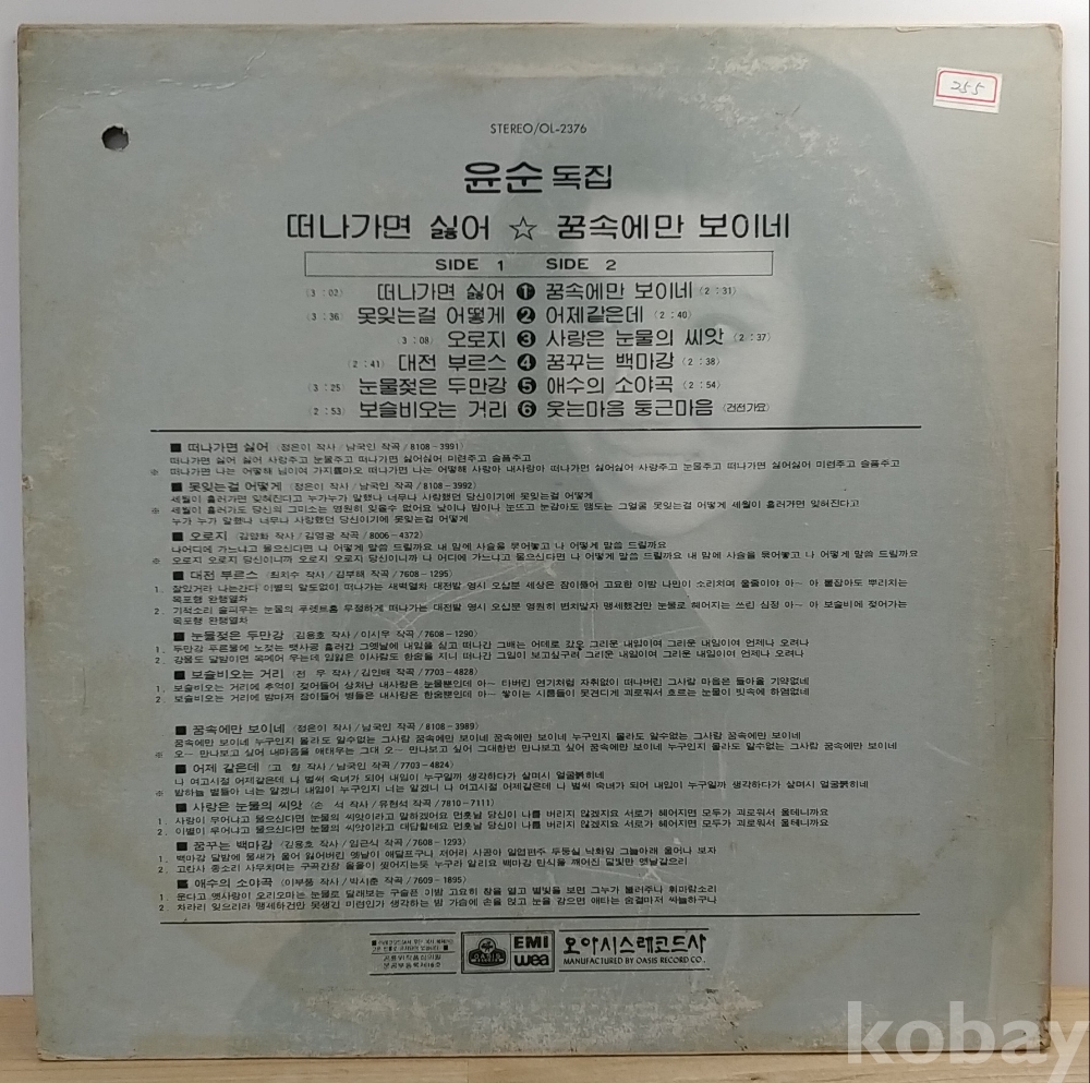 윤순 (떠나가면 싫어 / 꿈속에만 보이네) 1981년 오아시스레코드