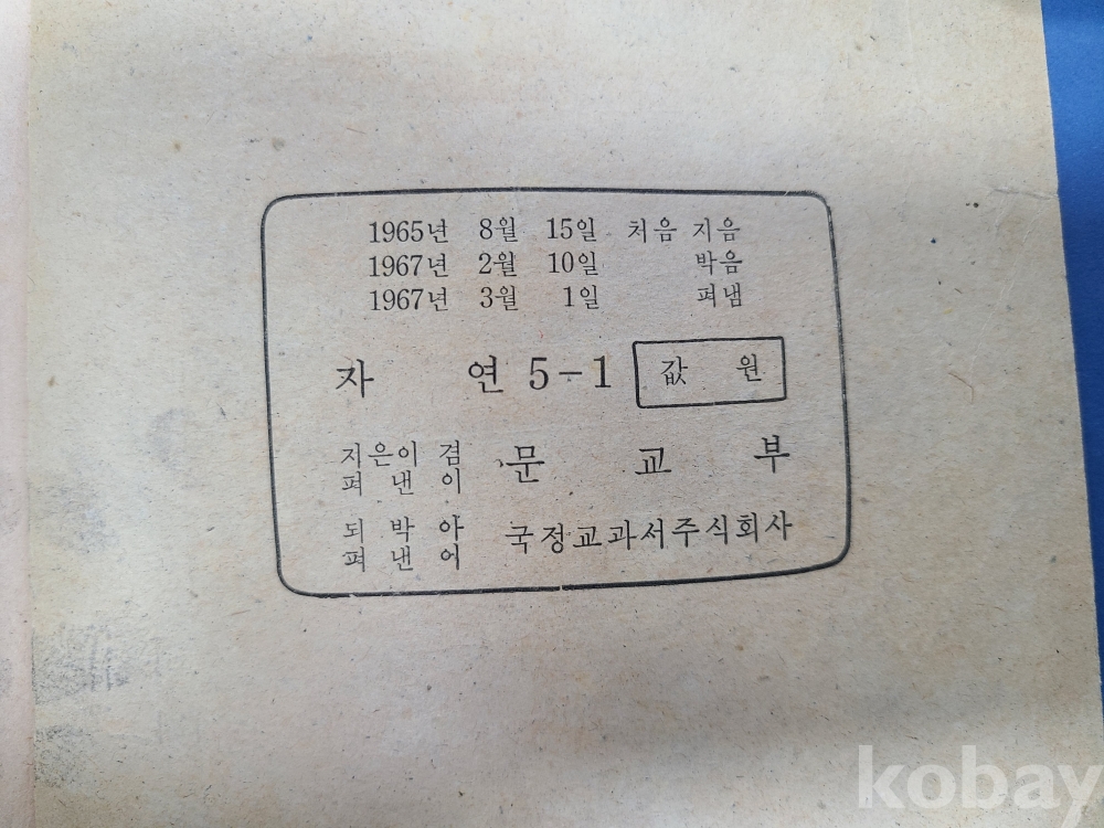 [교과서] 자연5-1*1967년/문교부 발행,낙서, 물먹음,찢어진부분 있음