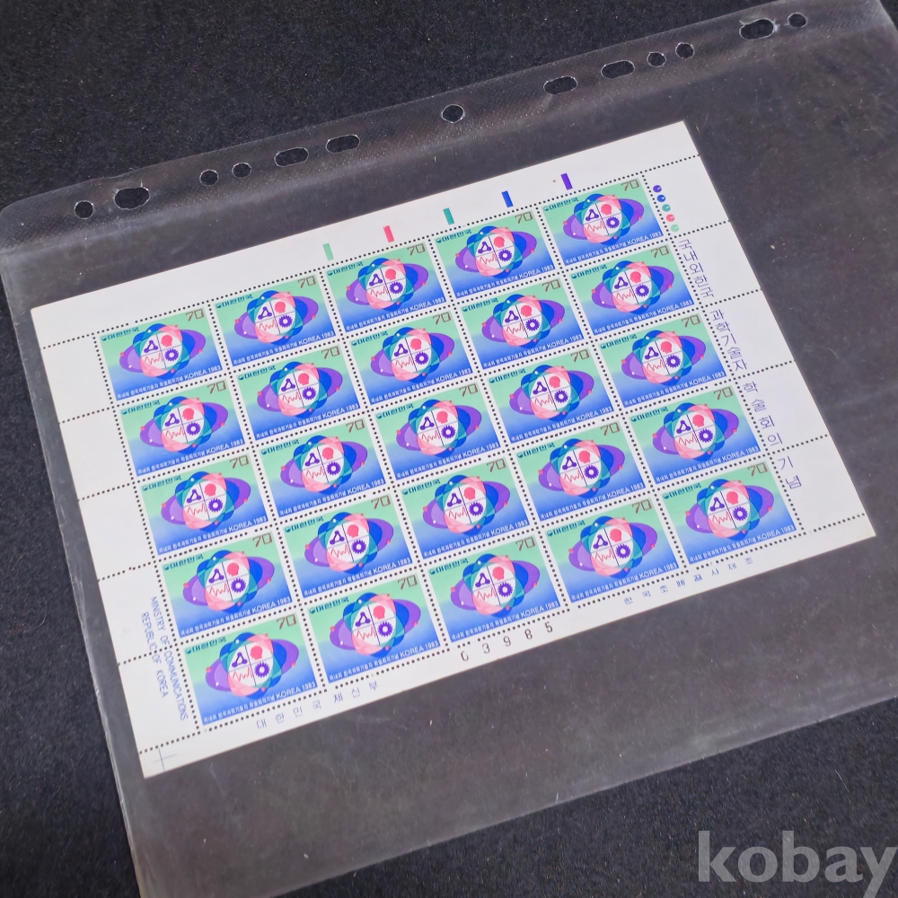 (천원경매) (((우표/전지/쉬트/초일봉피))) 1983년 국내외 한국과학기술자 학술회의기념 우표 전지 (미사용)