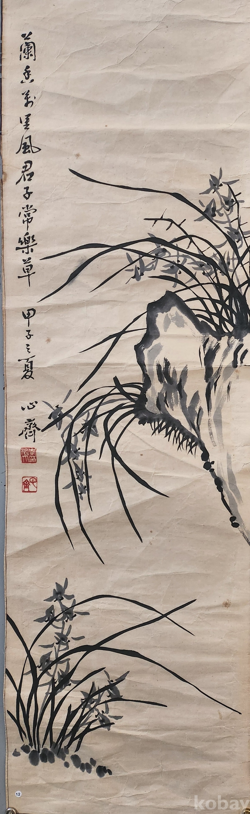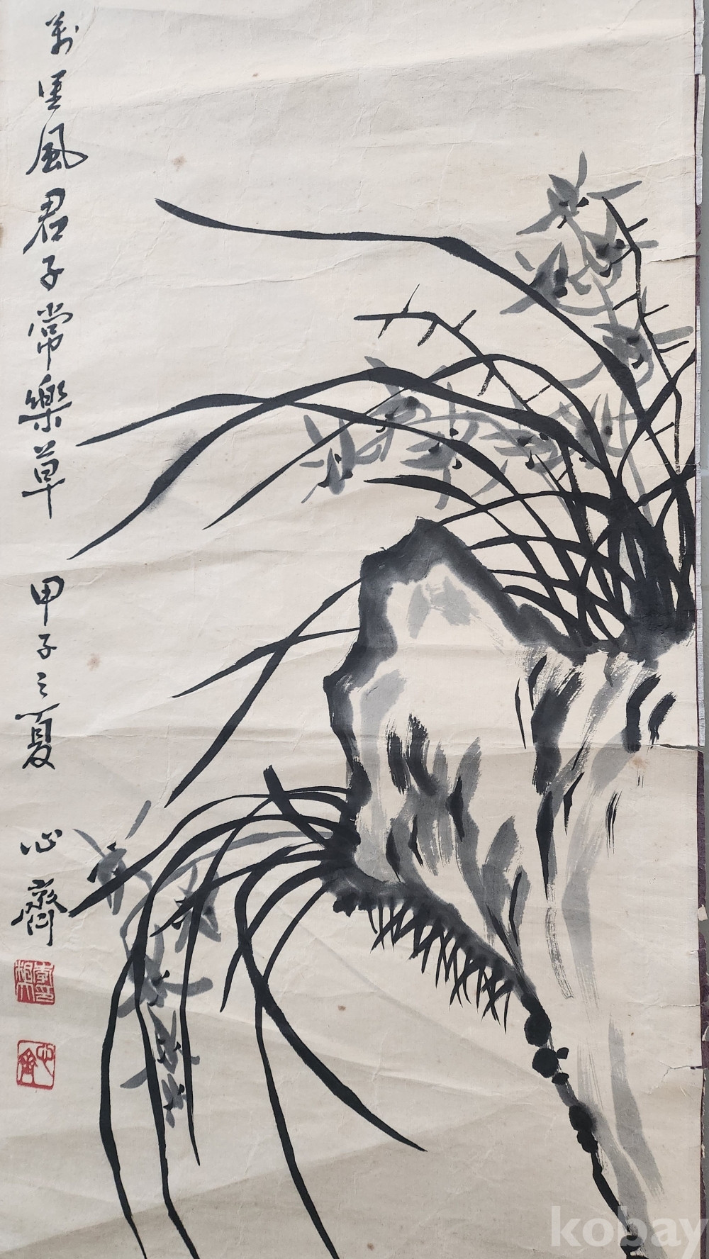 심제(心齊) 이상대(李相大, 1925~) 선생 수묵화(水墨畵) 괴석에 난초그림입니다