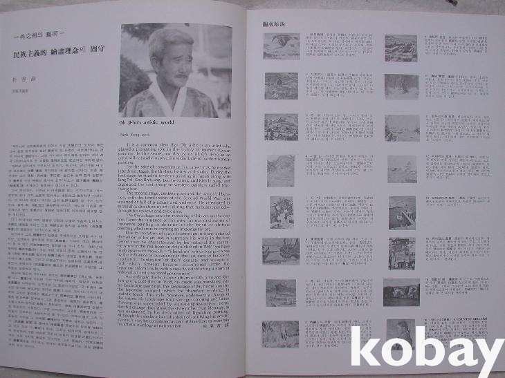 앞에 작가약력과 스케치작에 이어 미술평론가 박용숙의 <민족주의적인 회화이념의 고수>라는 간단한 해설이 있다. 해설에서 오지호는 30년대에 최초의 원색화집을 내며 녹향회에서 활동하였고 60년대에 '구상화선언'을 하였다는 말을 하였다.
