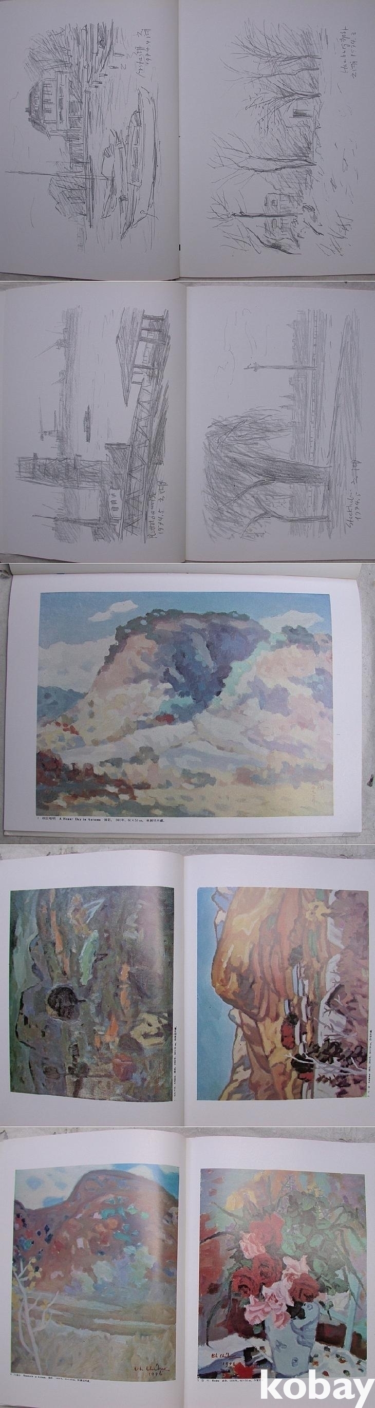 도판해설이 있고, 이어서 스케치 작품이 4쪽 있고 나서 작품의 원색도판이 이어진다.