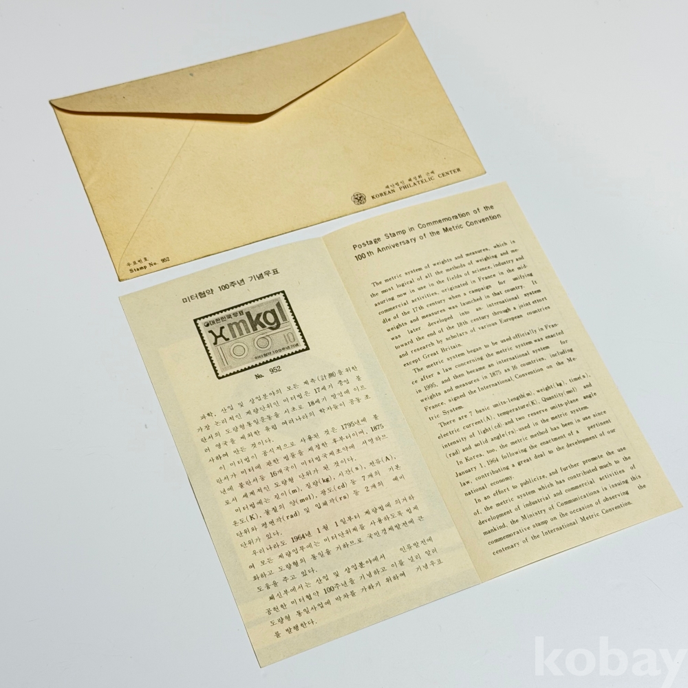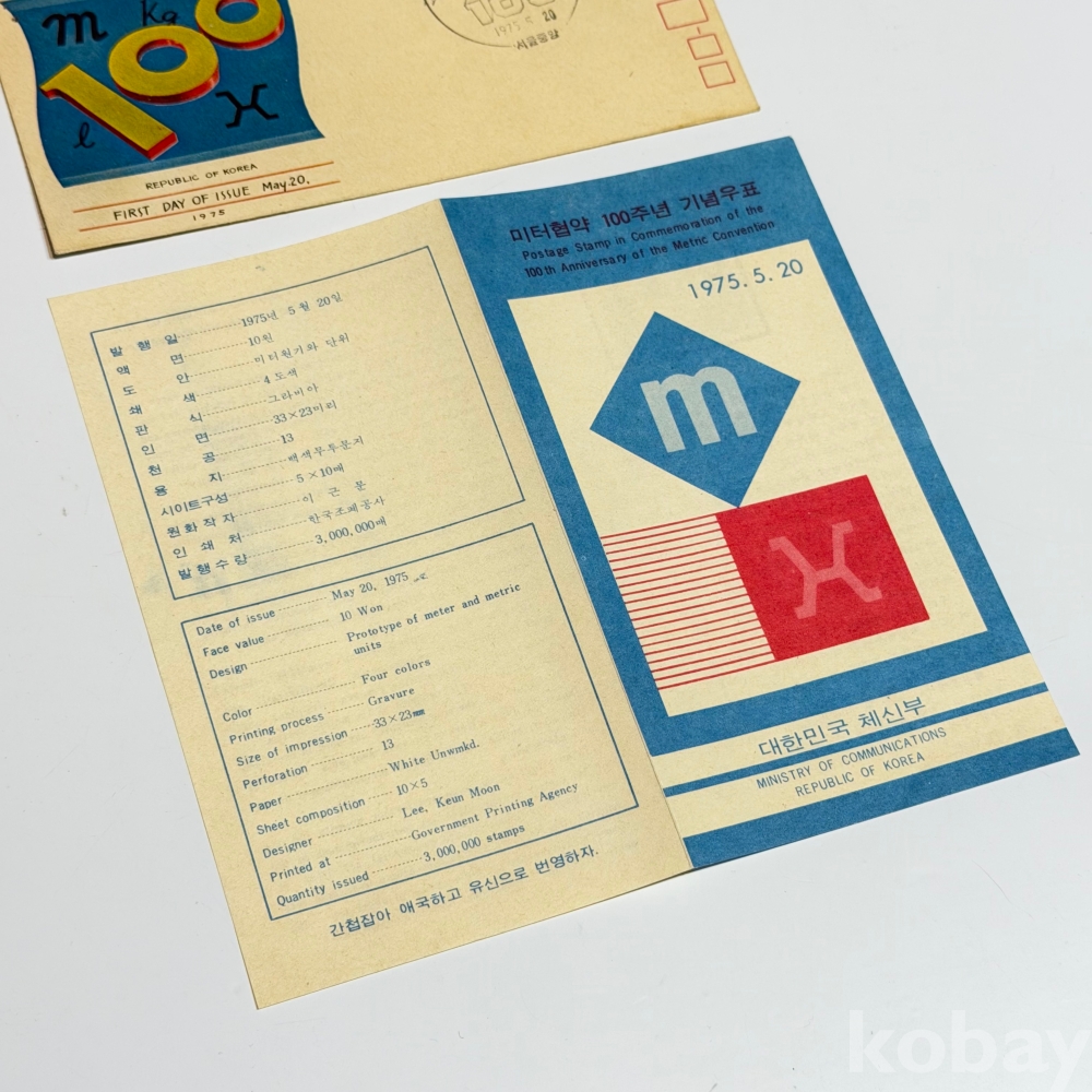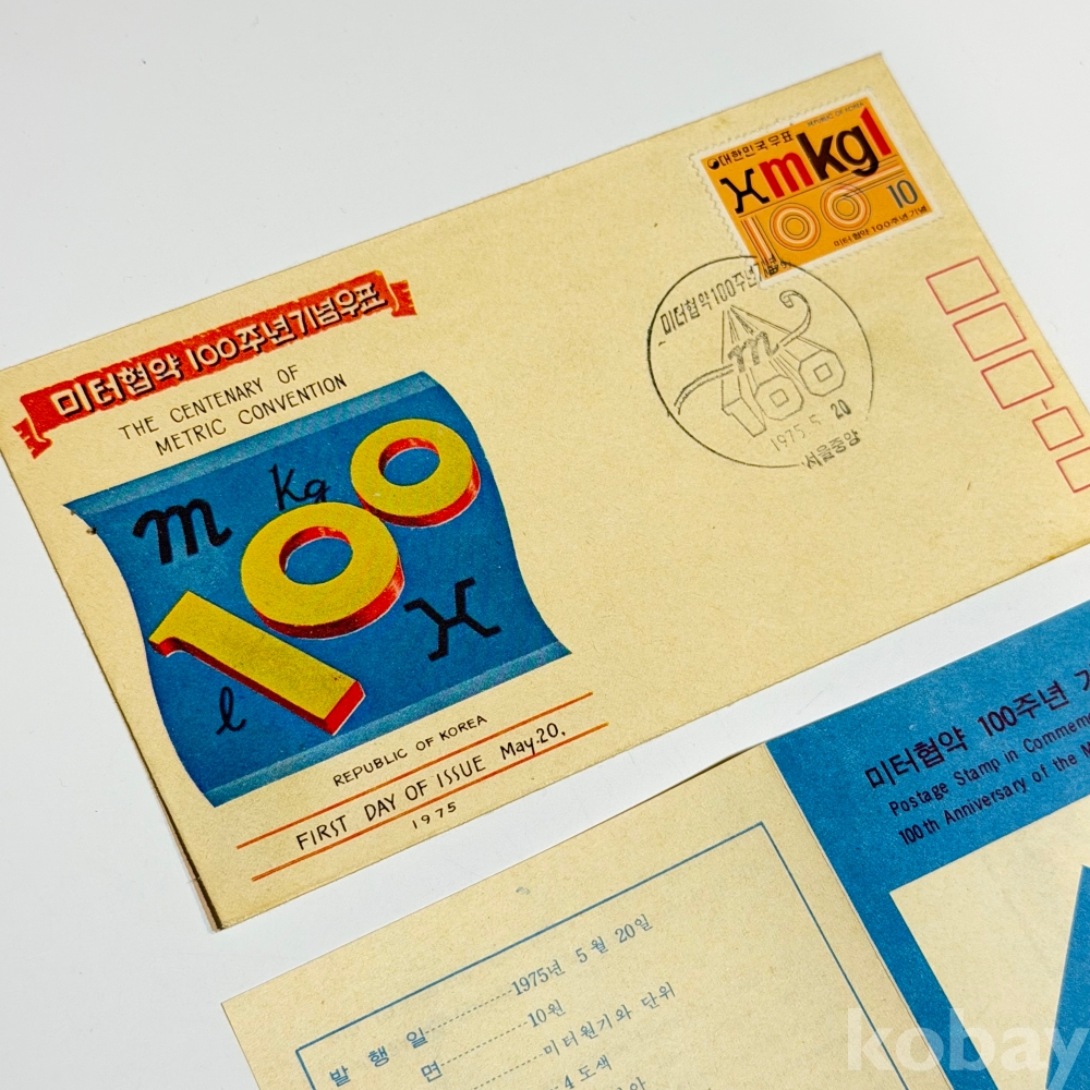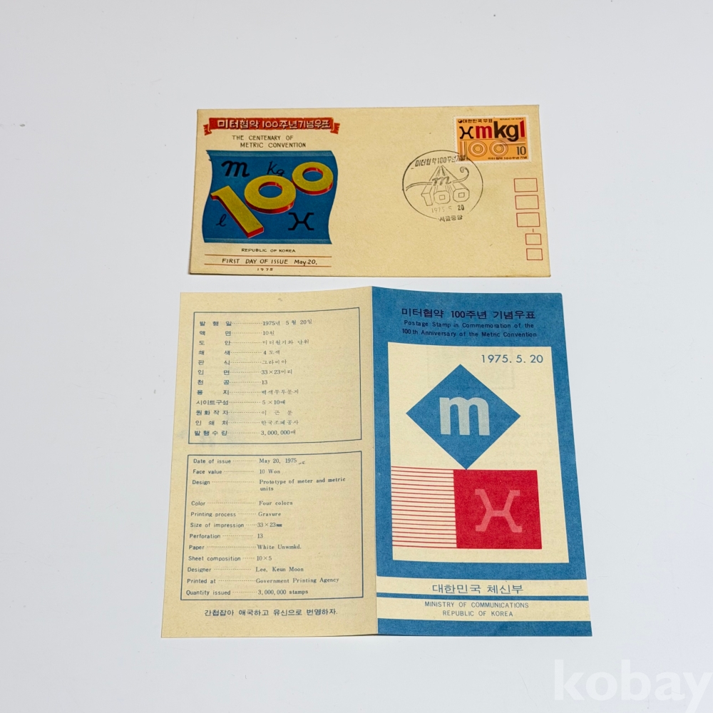 1975년 미터협약 100주년 기념우표 초일봉피/ 안내카드
