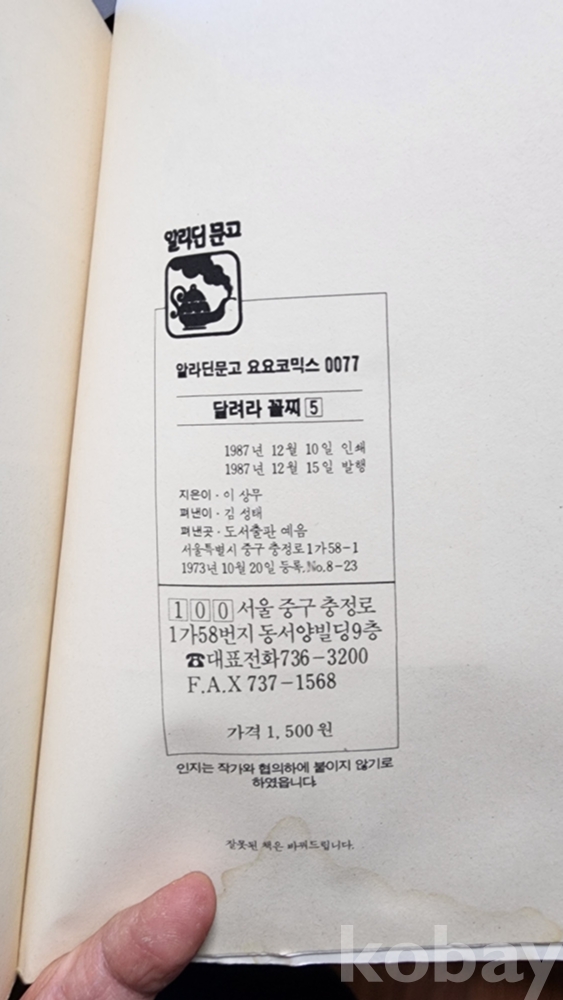 달려라 꼴찌, 제5권, 이상무 그림, 요요 코믹스