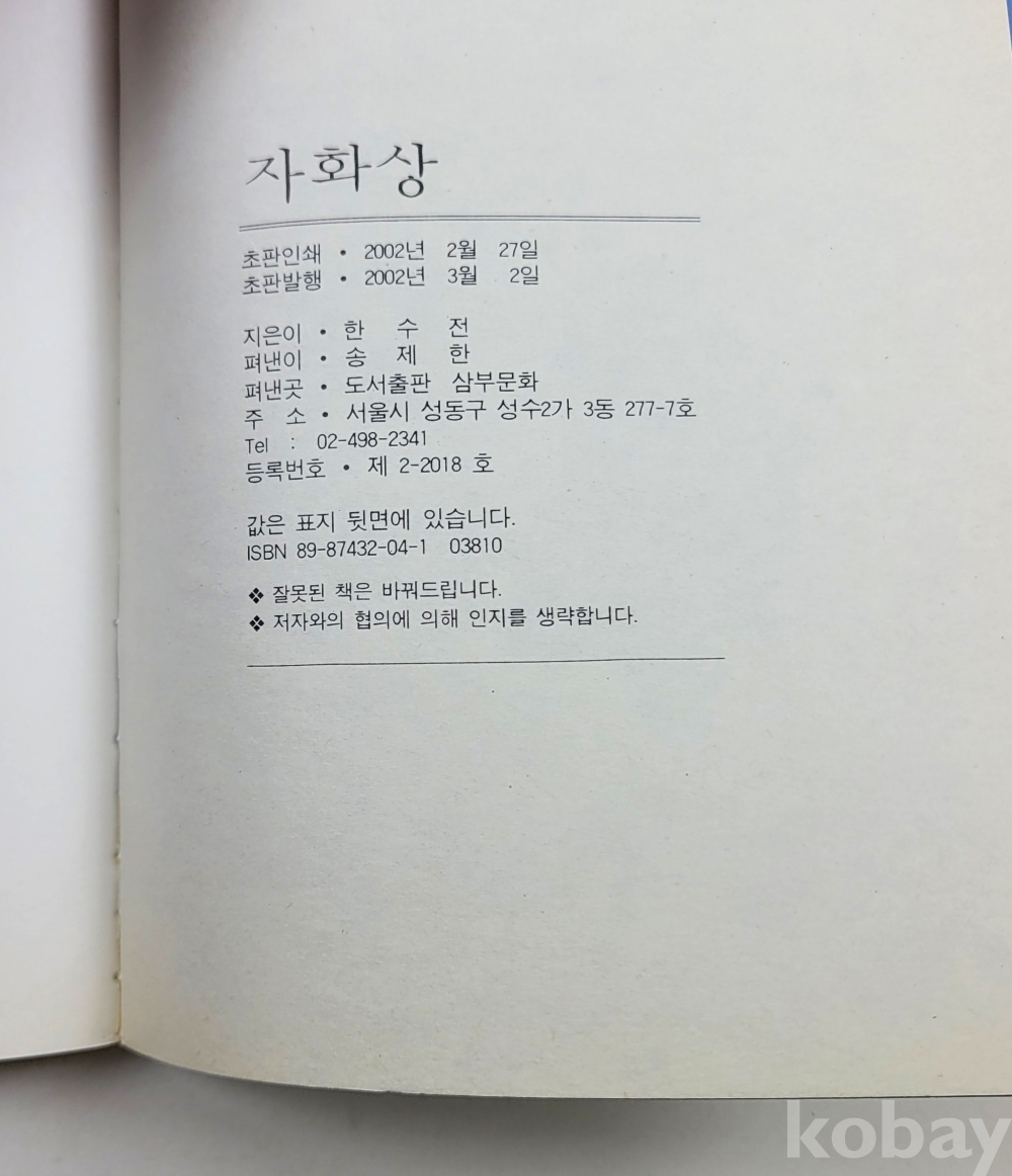 물 품 명 | 한수전 : 시집(1) / 자화상 / 2002년 초판 / 삼부문화 |