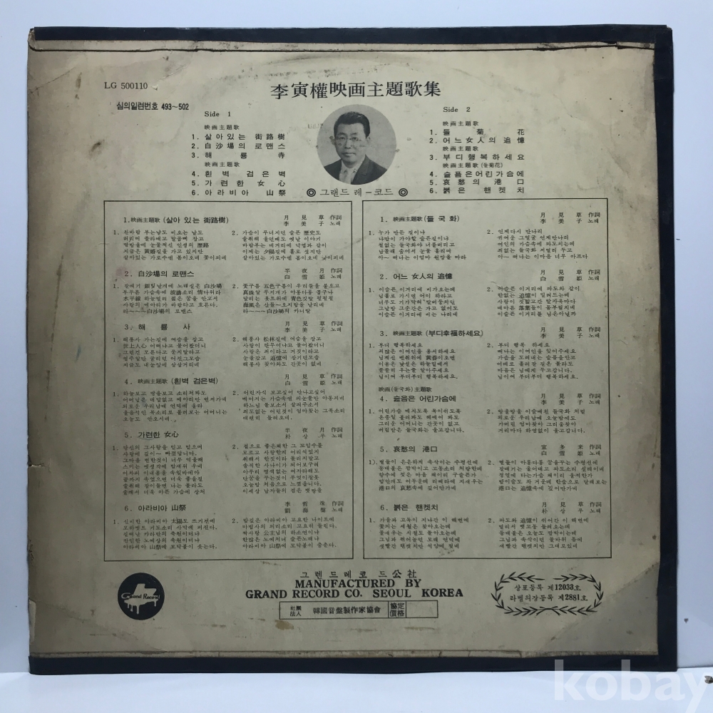 | 자켓상태 | VG : 주름, 접힘, 모서리 찢김 다수 | 음반상태 | VG : 생활 기스 다수, 가벼운 노이즈 존재 | 발매정보 | 알수없음 | 가사지여부 | 무 |