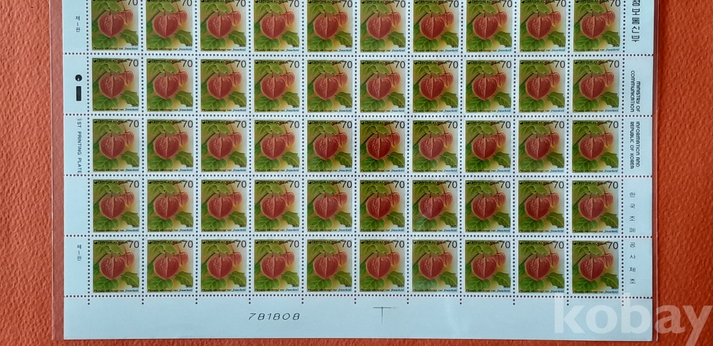 | 물품 크기 | 보통우표 전지 |