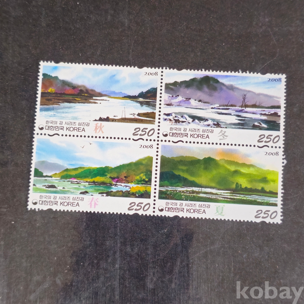 (천원경매) (((우표/전지/쉬트/초일봉피))) 2008 한국의강 강 시리즈 섬진강 우표4매 (미사용)