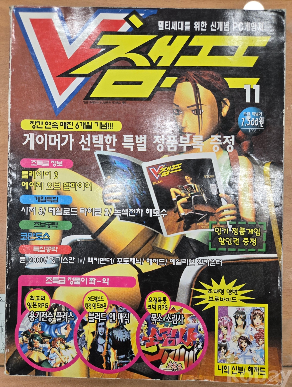 V챔프 98년11월호 동급생2 메가맨X4 스타크래프트브루드워 만화 게임 잡지 부록 상태 최상급