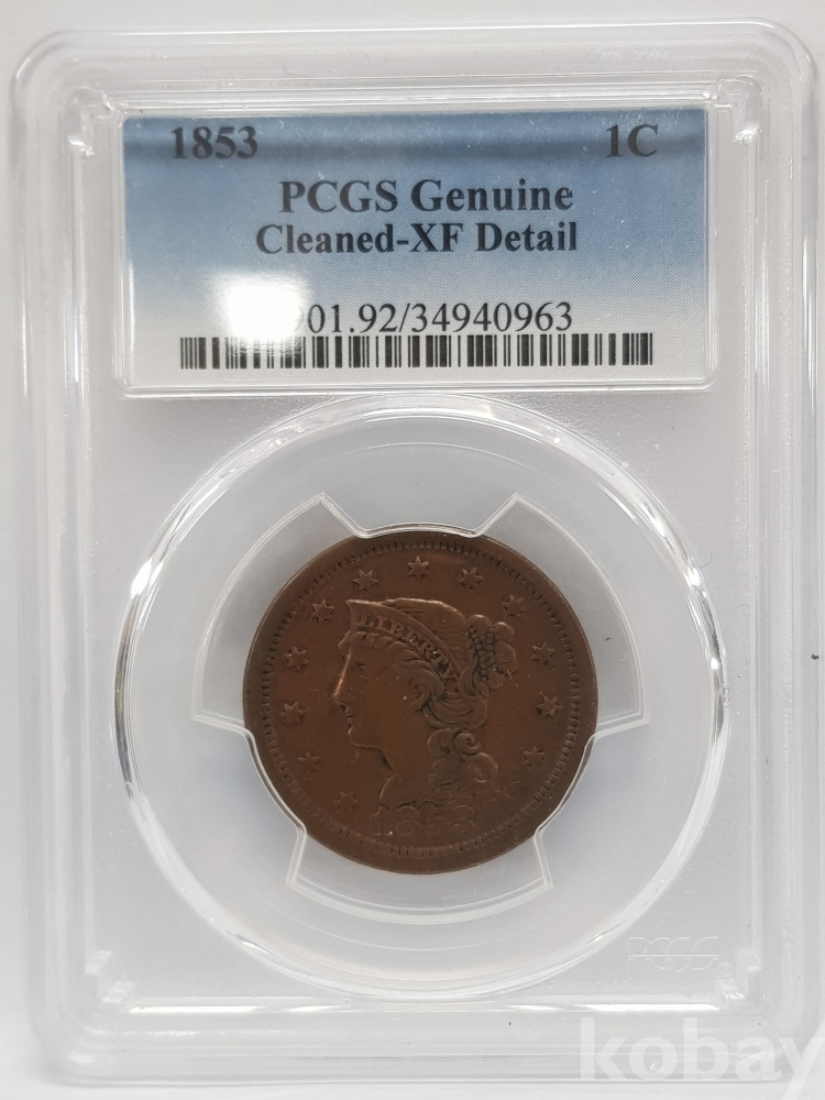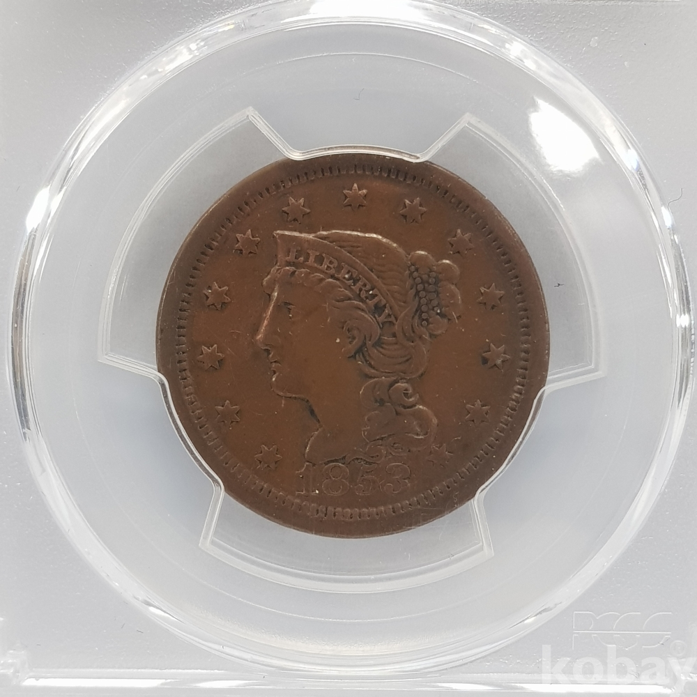 - 미국 1853년 브레이디드 헤어 라지 센트 PCGS XF DEAIL
