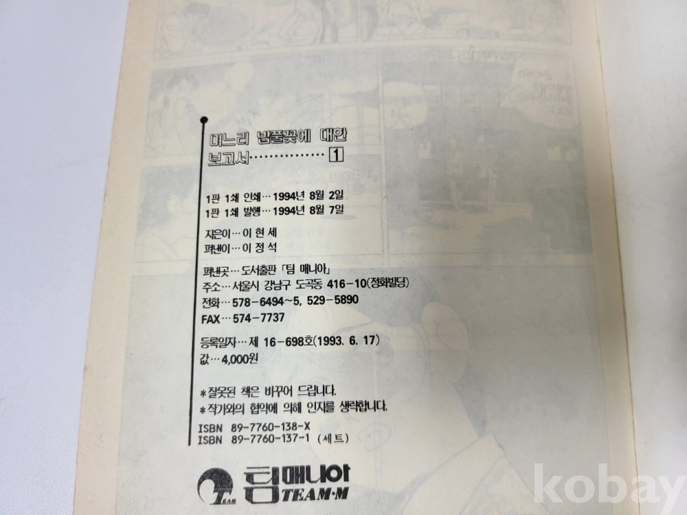 이현세 성인만화 - 며느리 밥풀꽃에 대한 보고서 1~2권(전권) 팀매니아