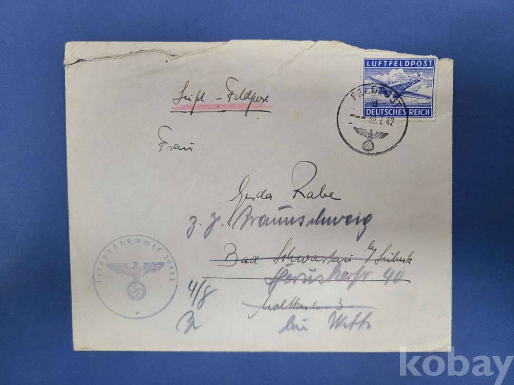 [흥미우표] 1942년 독일* 제2차세계대전시 독일 야전군사우편 카바[LUFTFELD POST DEUTSCHES REICH]* 나찌 검열인