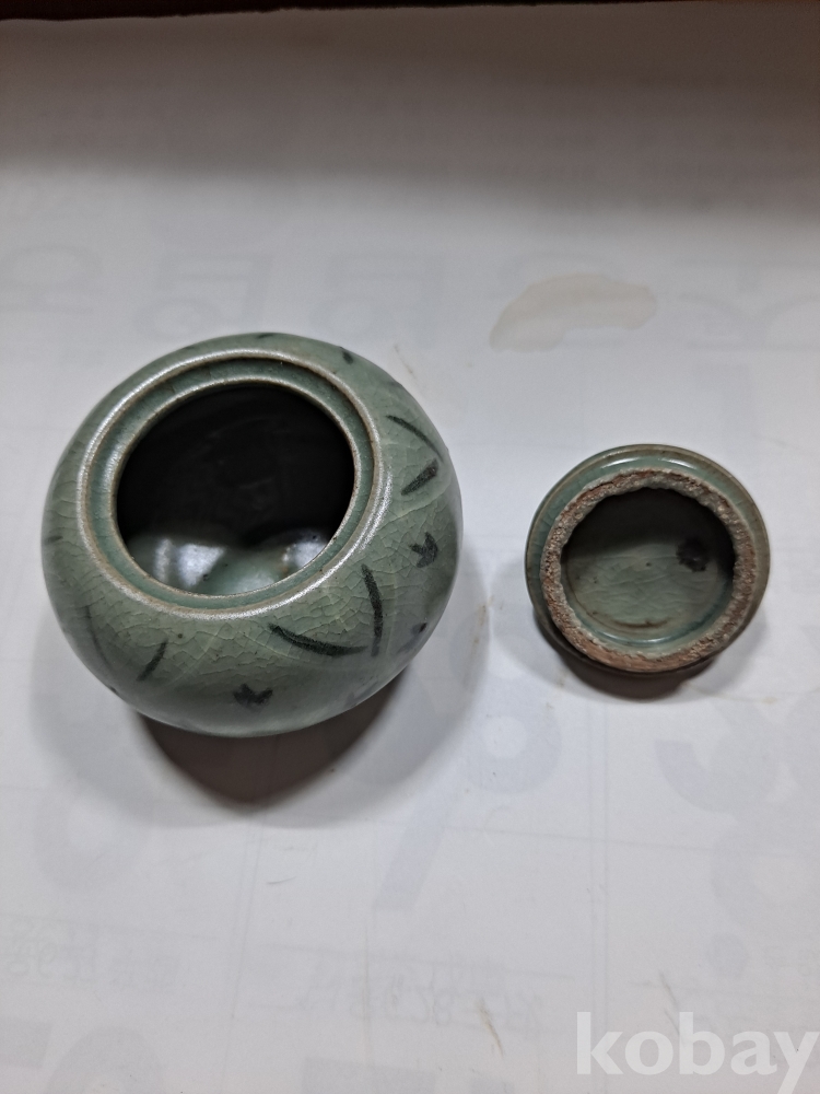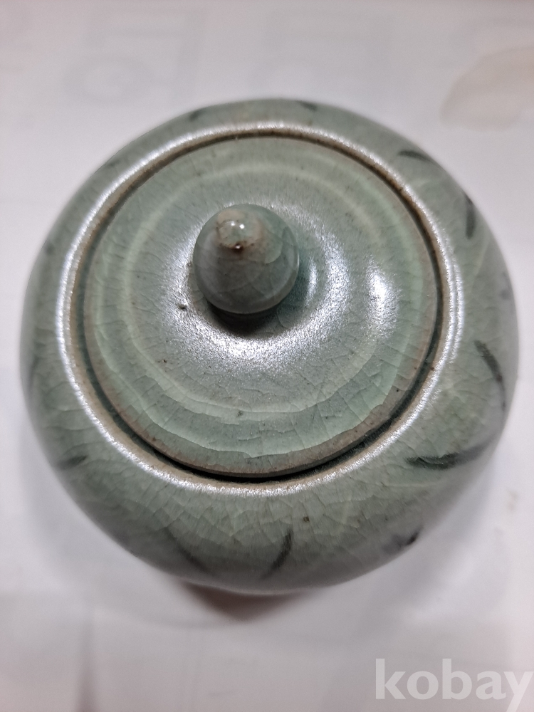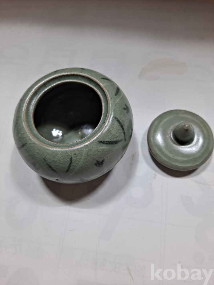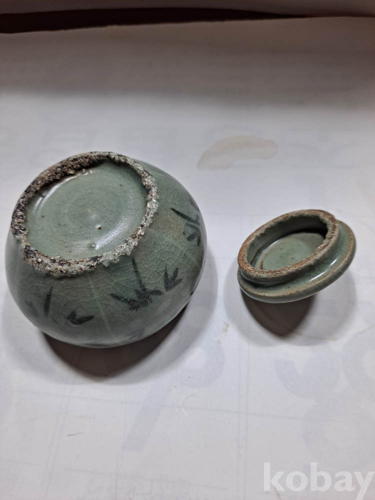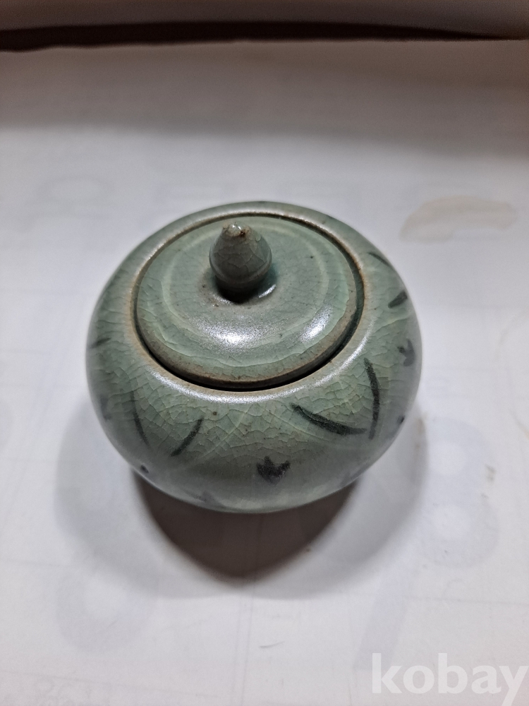 청자흑백상감 뚜껑 있는자그만한 화장기 입니다.