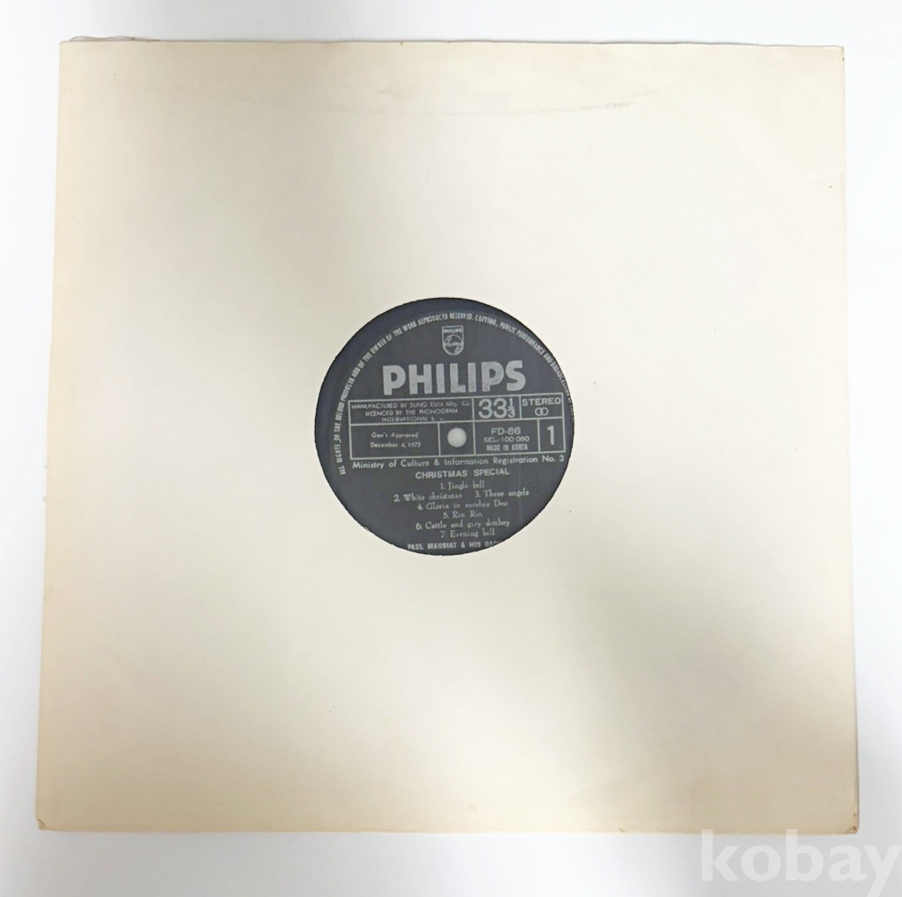 1. 윤유선 크리스마스 캐롤 [ 창밖을 보라 / 루돌프 사슴코 ] / 자켓 - EX, 음반 - EX (B면 스크레치) / 1980년 2. 메리 크리스마스 [ 징글벨 / 징글벨 ] / 자켓 - VG (테이프), 음반 - EX (B면 스크레치) 3. PAUL MAURIAT CHRISTMAS SPECIAL [ Jingle bell / Silent night, holy night ] / 자켓 - EX, 음반 - EX (A, B면 스크레치) 총 3점 일괄. | ||