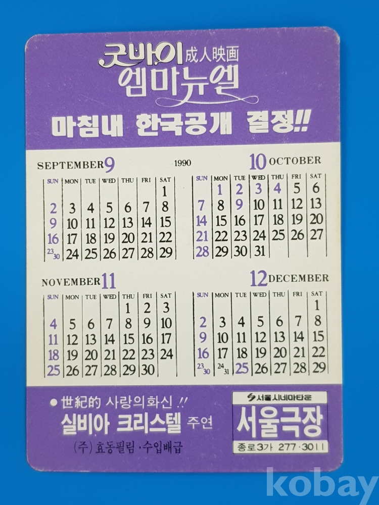 [w2] 영화카드*굿바이 엠마뉴엘/실비아 크리스텔 주연/1990년 서울극장
