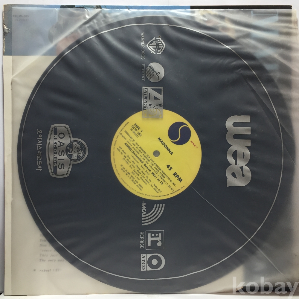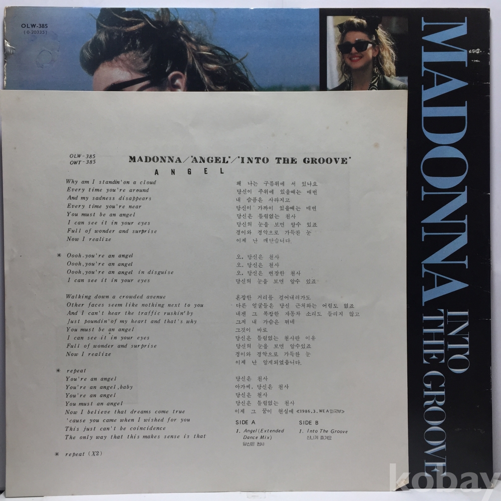LP 82,400-19 Madonna - Angel 자켓 EX+ 알판 EX+ 86 년 국내반