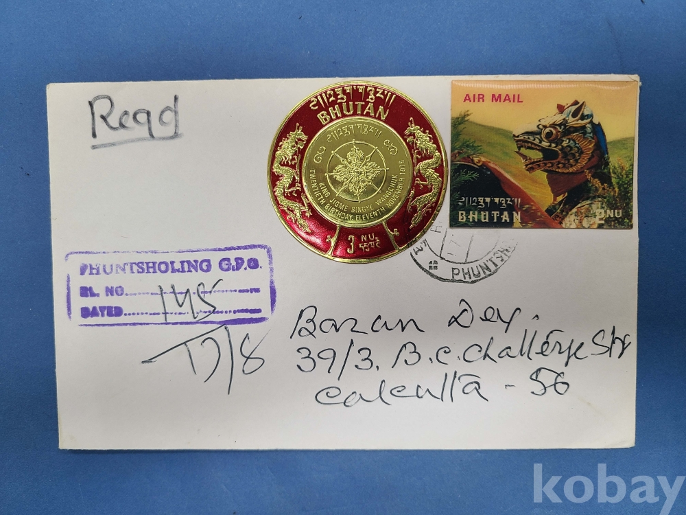 [흥미우표] 부탄,입체우표,원형금박우표 첩부 등기실체