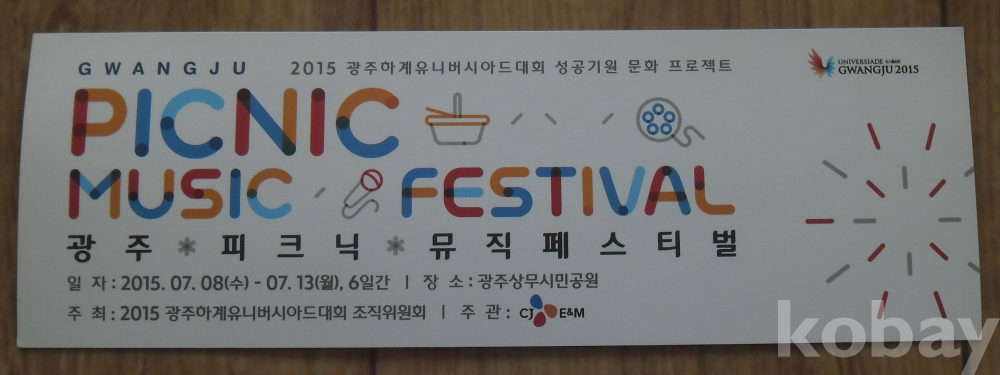 2015년 광주 피크닉 뮤직페스티벌 입장권