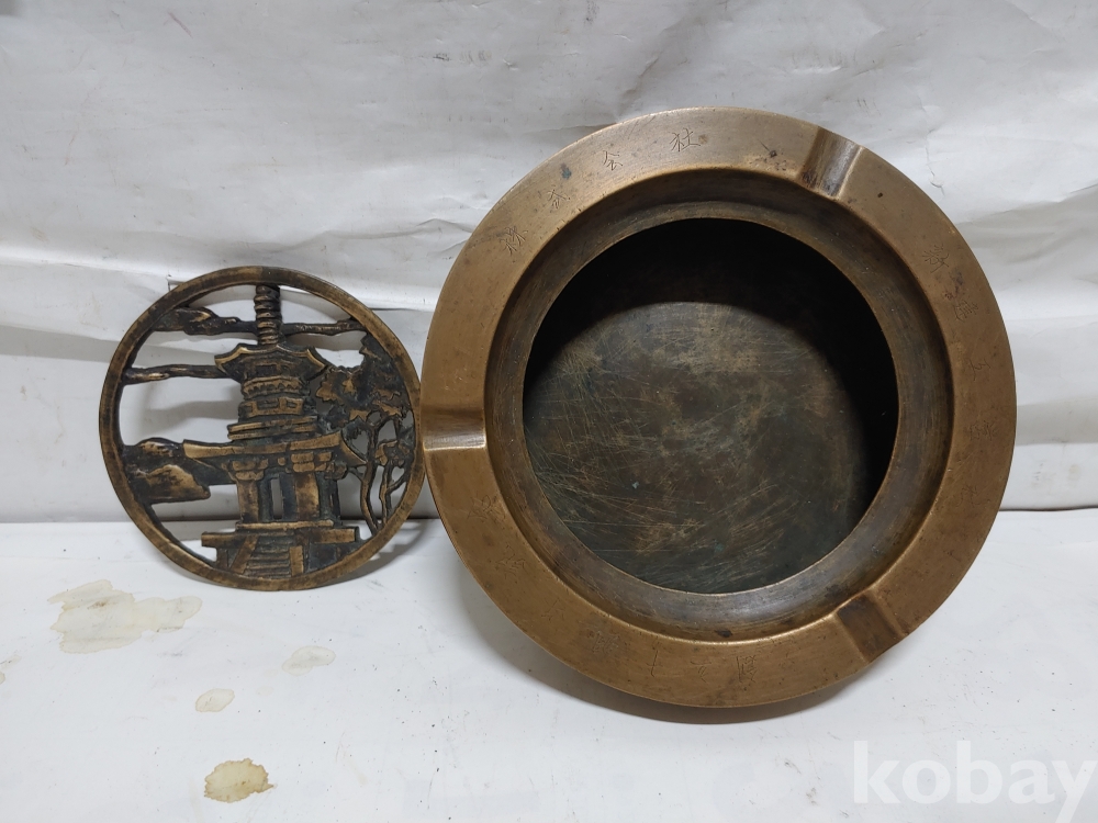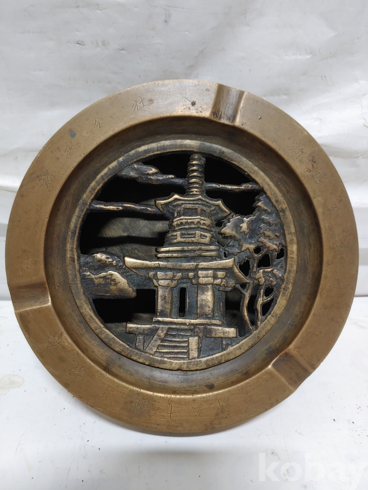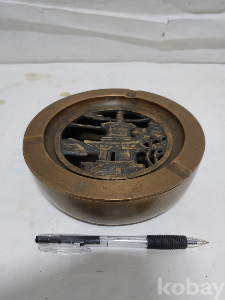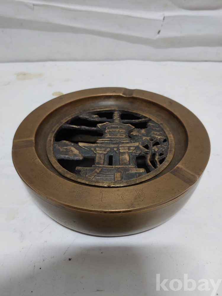""다보탑 문양이 있는 옛날 놋쇠 담배 재털이""