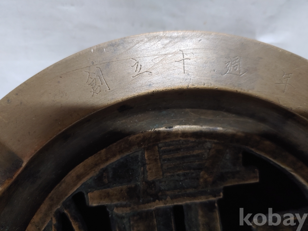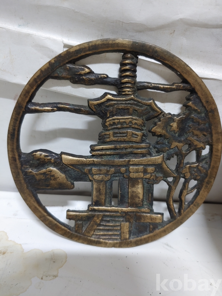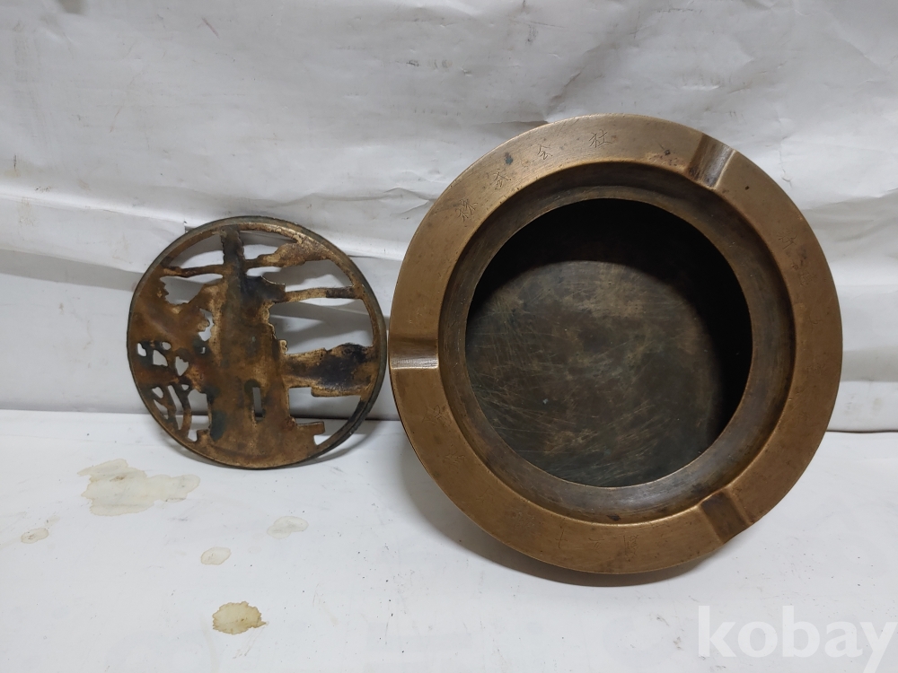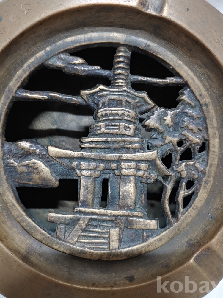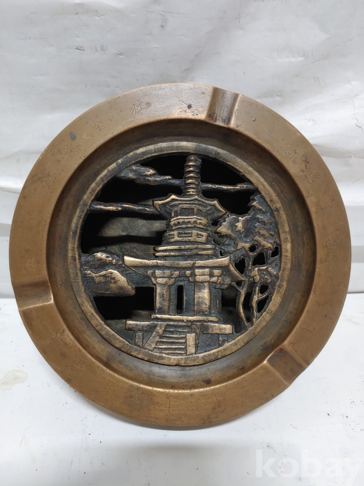 ""다보탑 문양이 있는 옛날 놋쇠 담배 재털이""
