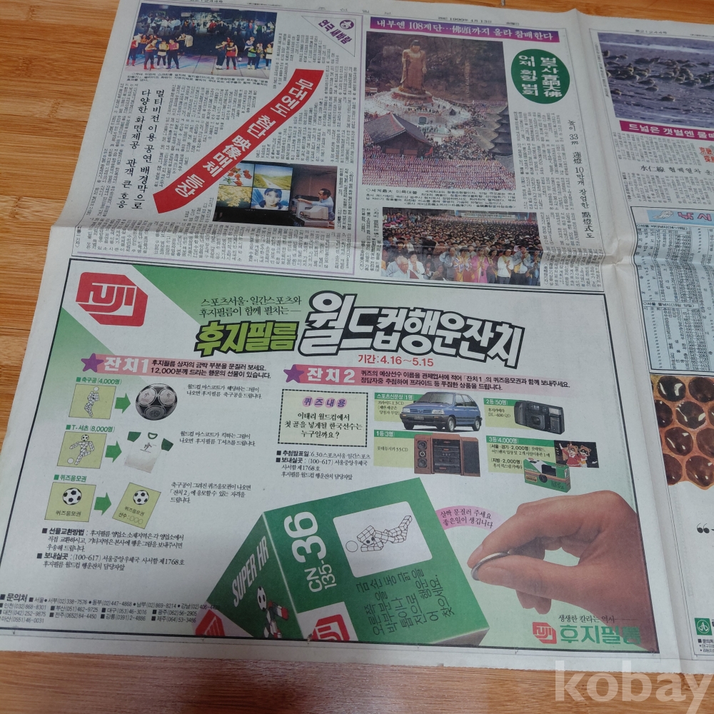 후지필름 월드컵 행운잔치 ㆍ태평양식품 광고 조선 90년4월13일 올려드립니다