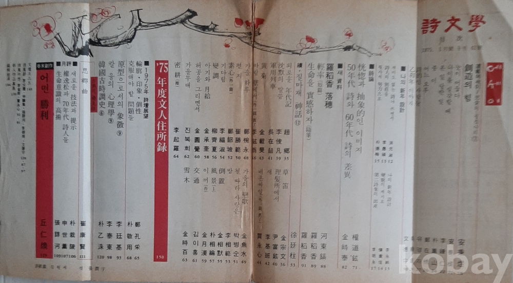 시문학1975년1월호 NO42 표지화 김원세